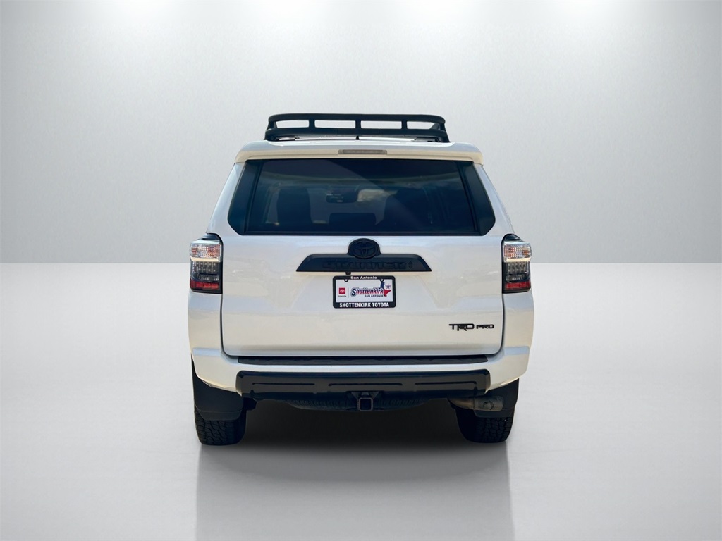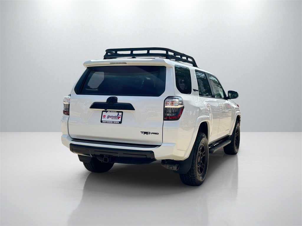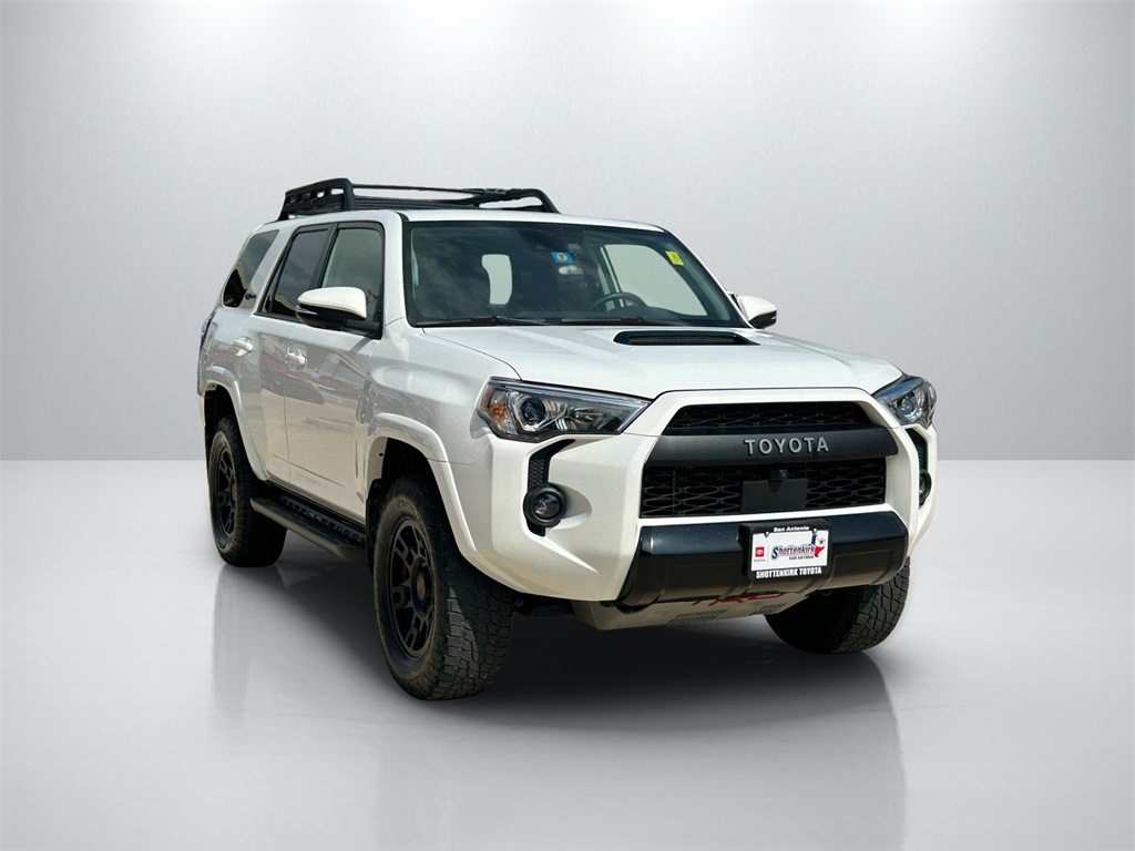 CARFAX One-Owner. Clean CARFAX. Leather Seats, 4WD, Black/Graphite w/SofTex Seat Trim, 15 Speakers, 3.727 Axle Ratio, 4-Wheel Disc Brakes, ABS brakes, Air Conditioning, Alloy wheels, AM/FM radio: SiriusXM, Anti-whiplash front head restraints, Apple CarPlay/Android Auto, Auto High-beam Headlights, Auto-dimming Rear-View mirror, Automatic temperature control, Black Lug Nuts, Blackout Emblem Overlays (TMS), Brake assist, Bumpers: body-color, Cargo Cover (TMS), Cargo Mat (TMS), Cargo Tote (TMS), Cargo Tray (TMS), Coin Holder/Ashtray Cup (TMS), Compass, Dashcam (TMS), Door Edge Guard (TMS), Driver door bin, Driver vanity mirror, Dual front impact airbags, Dual front side impact airbags, Dual Power Ports/Quick Charge Cable Package (TMS), Dual Zone Auto Climate Control, Electronic Stability Control, Emergency Assistance Kit (TMS), Emergency communication system: Safety Connect (1-year trial), Exterior Parking Camera Rear, Fog Lights, Fox Shocks, Front anti-roll bar, Front Bucket Seats, Front Center Armrest, Front dual zone A/C, Front fog lights, Front reading lights, Front wheel independent suspension, Garage Door Opener, Garage door transmitter: HomeLink, Heated door mirrors, Heated Front Bucket Seats, Heated front seats, Heated Outside Rear-View Mirrors, Heated steering wheel, Hitch Ball Mount (TMS), Illuminated entry, Knee airbag, Leather Shift Knob, Low tire pressure warning, Moonroof w/Tilt Up & Slide, Multi-Terrain Back Monitor, Navigation System, Occupant sensing airbag, Outside temperature display, Overhead airbag, Overhead console, Paint Protection Film (TMS), Panic alarm, Passenger door bin, Passenger vanity mirror, Power door mirrors, Power driver seat, Power moonroof, Power passenger seat, Power steering, Power windows, Radio: Premium Audio w/JBL, Rear anti-roll bar, Rear seat center armrest, Rear window defroster, Rear window wiper, Remote keyless entry, Roof rack, Roof Rack, Security system, Sliding Rear Cargo Deck, SofTex Seat Trim, Speed control, Speed-sensing steering, Split folding rear seat, Spoiler, Steering wheel mounted audio controls, Tachometer, Telescoping steering wheel, Tilt steering wheel, Traction control, Trail Running Boards (TMS), TRD Pro All Weather Floor Liner, TRD Pro Badging, TRD Pro Exhaust, TRD Pro Package, TRD Shift Knob, Trip computer, Trunk Carpet, Universal Tablet Holder (TMS), Variably intermittent wipers, Wheel Locks, Wheels: 17" Matte Black Flow-Formed TRD Alloy, White-Colored Molded 4Runner Cooler (TMS).