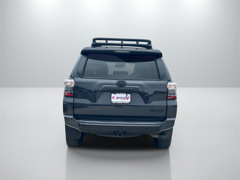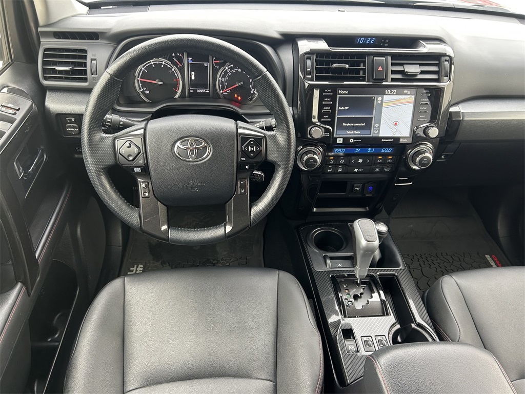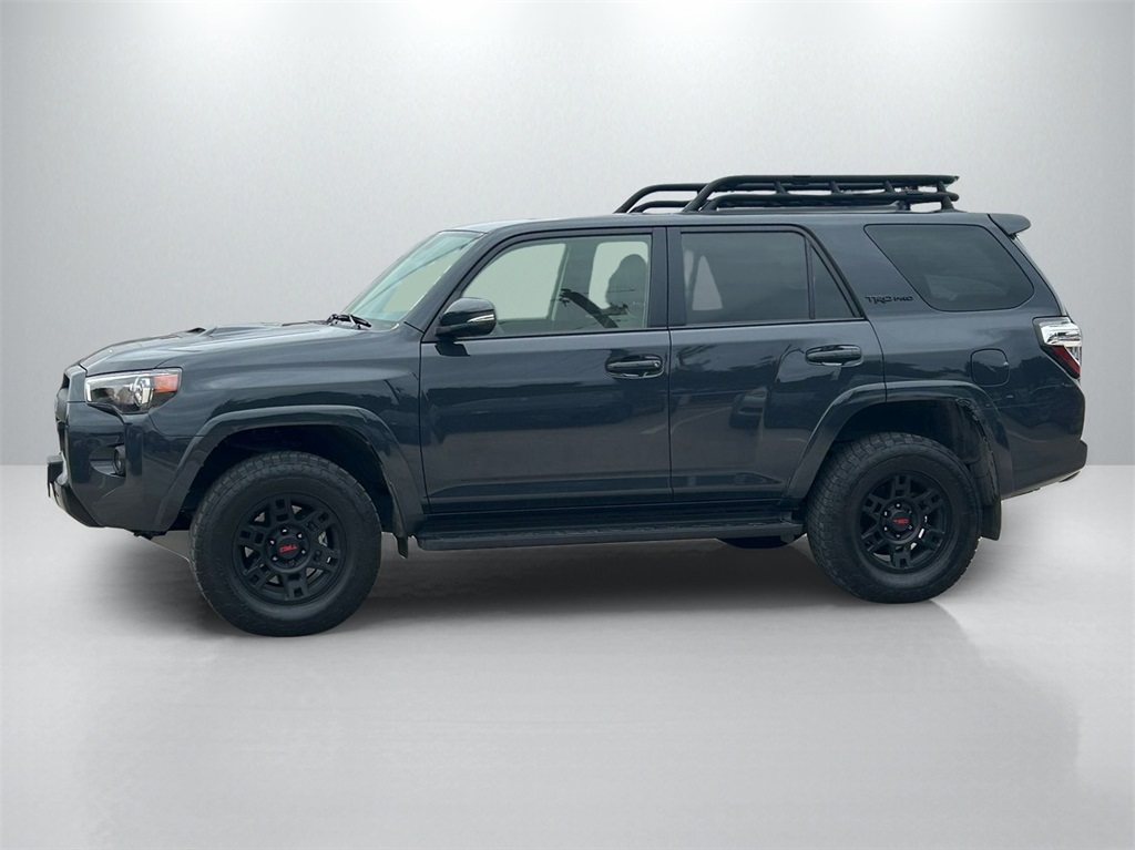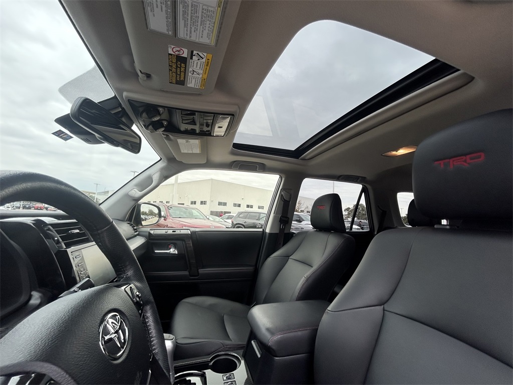 CARFAX One-Owner. Clean CARFAX. 4WD, Graphite Artificial Leather, 15 Speakers, 3.727 Axle Ratio, 4-Wheel Disc Brakes, ABS brakes, Air Conditioning, Alloy wheels, AM/FM radio: SiriusXM, Anti-whiplash front head restraints, Apple CarPlay/Android Auto, Auto High-beam Headlights, Auto-dimming Rear-View mirror, Automatic temperature control, Black Lug Nuts, Blackout Emblem Overlays (TMS), Brake assist, Bumpers: body-color, Cargo Tray (TMS), Compass, Driver door bin, Driver vanity mirror, Dual front impact airbags, Dual front side impact airbags, Dual Power Ports/Quick Charge Cable Package (TMS), Dual Zone Auto Climate Control, Electronic Stability Control, Emergency Assistance Kit (TMS), Emergency communication system: Safety Connect (1-year trial), Exterior Parking Camera Rear, Fog Lights, Fox Shocks, Front anti-roll bar, Front Bucket Seats, Front Center Armrest, Front dual zone A/C, Front fog lights, Front reading lights, Front wheel independent suspension, Garage Door Opener, Garage door transmitter: HomeLink, Heated door mirrors, Heated Front Bucket Seats, Heated front seats, Heated Outside Rear-View Mirrors, Heated steering wheel, Hitch Ball Mount (TMS), Illuminated entry, Knee airbag, Leather Shift Knob, Low tire pressure warning, Moonroof w/Tilt Up & Slide, Multi-Terrain Back Monitor, Navigation System, Occupant sensing airbag, Outside temperature display, Overhead airbag, Overhead console, Paint Protection Film (TMS), Panic alarm, Passenger door bin, Passenger vanity mirror, Power door mirrors, Power driver seat, Power moonroof, Power passenger seat, Power steering, Power windows, Radio: Premium Audio w/JBL, Rear anti-roll bar, Rear seat center armrest, Rear window defroster, Rear window wiper, Remote keyless entry, Rigid Running Boards, Roof rack, Roof Rack, Security system, Sliding Rear Cargo Deck, SofTex Seat Trim, Speed control, Speed-sensing steering, Split folding rear seat, Spoiler, Steering wheel mounted audio controls, Tachometer, Telescoping steering wheel, Tilt steering wheel, Traction control, TRD Pro All Weather Floor Liner, TRD Pro Badging, TRD Pro Exhaust, TRD Pro Package, TRD Shift Knob, Trip computer, Trunk Carpet, Variably intermittent wipers, Wheel Locks, Wheels: 17" Matte Black Flow-Formed TRD Alloy.