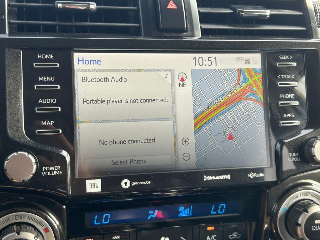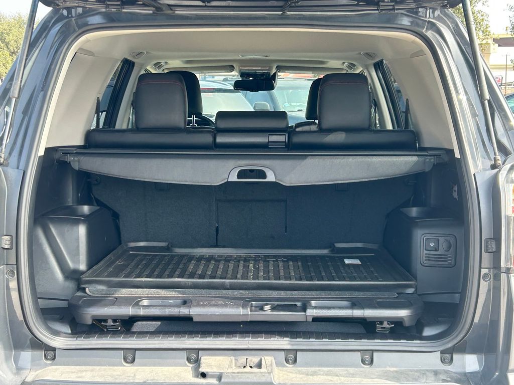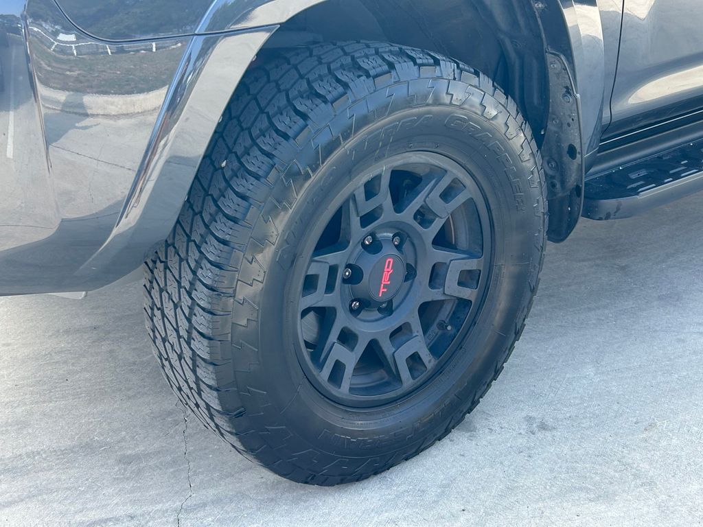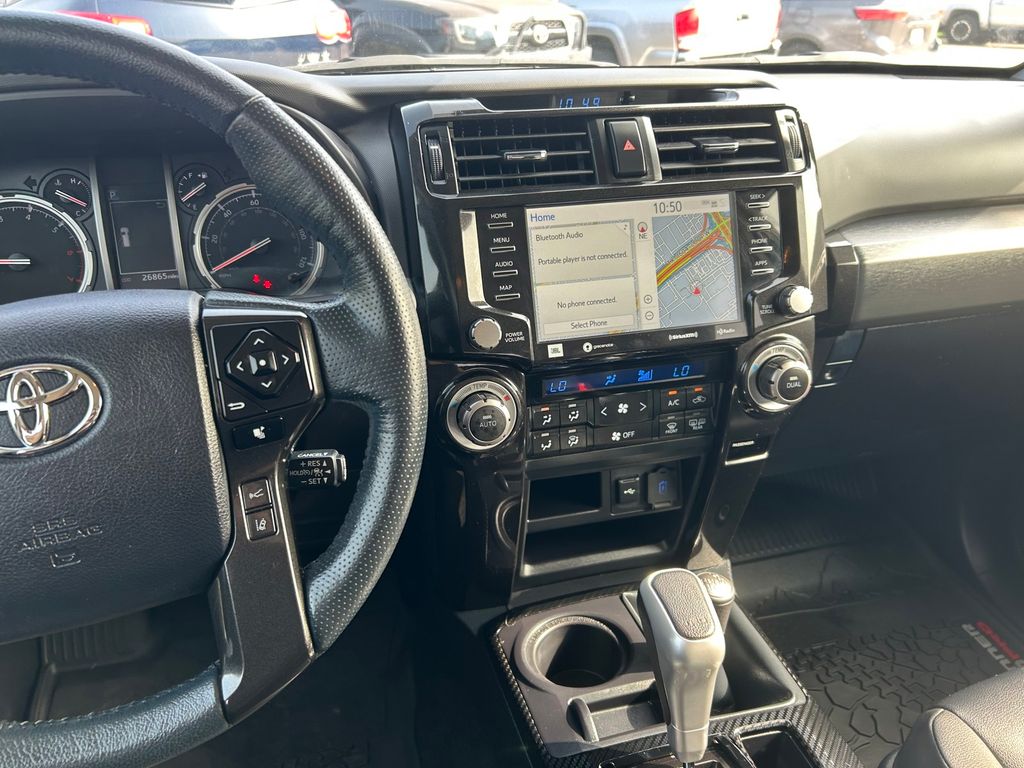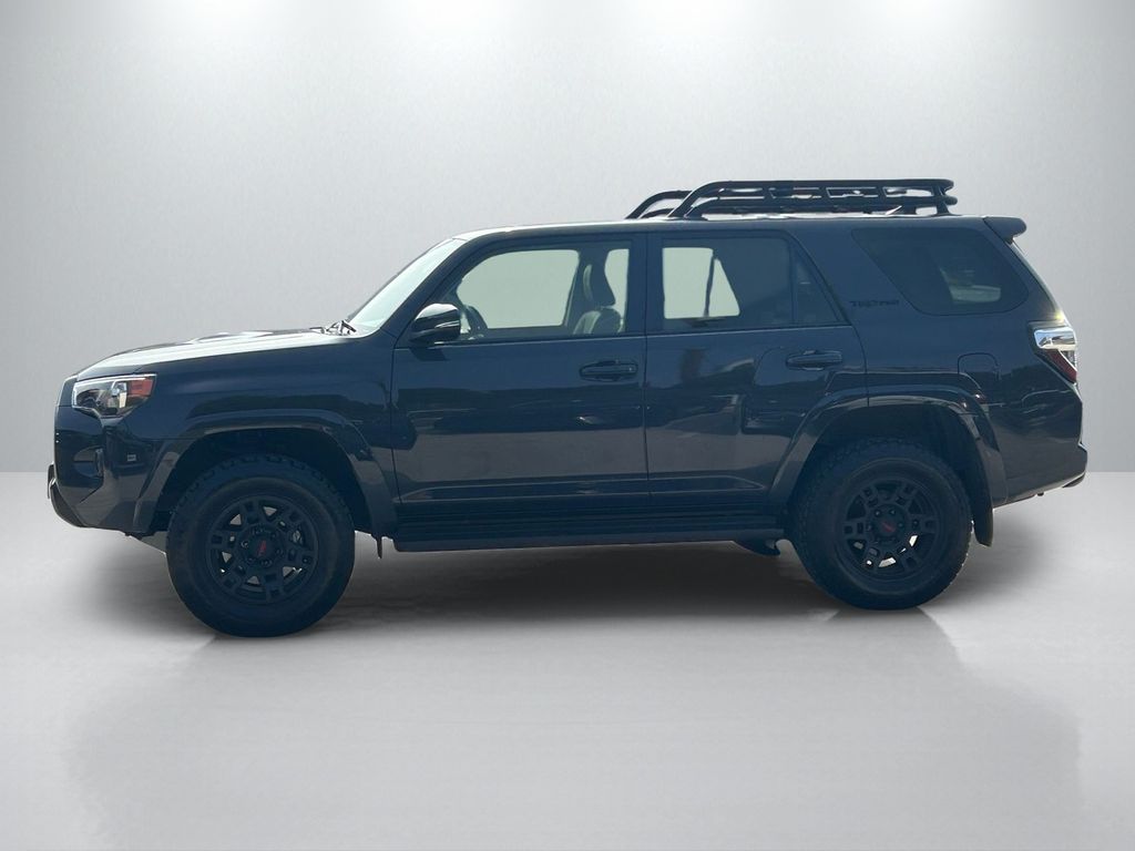 CARFAX One-Owner. Clean CARFAX. 4WD, Black/Graphite w/SofTex Seat Trim, 15 Speakers, 3.727 Axle Ratio, 4-Wheel Disc Brakes, ABS brakes, Air Conditioning, Alloy wheels, AM/FM radio: SiriusXM, Anti-whiplash front head restraints, Apple CarPlay/Android Auto, Auto High-beam Headlights, Auto-dimming Rear-View mirror, Automatic temperature control, Black Lug Nuts, Brake assist, Bumpers: body-color, Compass, Driver door bin, Driver vanity mirror, Dual front impact airbags, Dual front side impact airbags, Dual Zone Auto Climate Control, Electronic Stability Control, Emergency communication system: Safety Connect (1-year trial), Exterior Parking Camera Rear, Fog Lights, Fox Shocks, Front anti-roll bar, Front Bucket Seats, Front Center Armrest, Front dual zone A/C, Front fog lights, Front reading lights, Front wheel independent suspension, Garage Door Opener, Garage door transmitter: HomeLink, Heated door mirrors, Heated Front Bucket Seats, Heated front seats, Heated Outside Rear-View Mirrors, Heated steering wheel, Illuminated entry, Knee airbag, Leather Shift Knob, Low tire pressure warning, Moonroof w/Tilt Up & Slide, Multi-Terrain Back Monitor, Navigation System, Occupant sensing airbag, Outside temperature display, Overhead airbag, Overhead console, Panic alarm, Passenger door bin, Passenger vanity mirror, Power door mirrors, Power driver seat, Power moonroof, Power passenger seat, Power steering, Power windows, Radio: Premium Audio w/JBL, Rear anti-roll bar, Rear seat center armrest, Rear window defroster, Rear window wiper, Remote keyless entry, Roof rack, Roof Rack, Security system, SofTex Seat Trim, Speed control, Speed-sensing steering, Split folding rear seat, Spoiler, Steering wheel mounted audio controls, Tachometer, Telescoping steering wheel, Tilt steering wheel, Traction control, TRD Pro All Weather Floor Liner, TRD Pro Badging, TRD Pro Exhaust, TRD Shift Knob, Trip computer, Variably intermittent wipers, Wheel Locks, Wheels: 17" Matte Black Flow-Formed TRD Alloy.