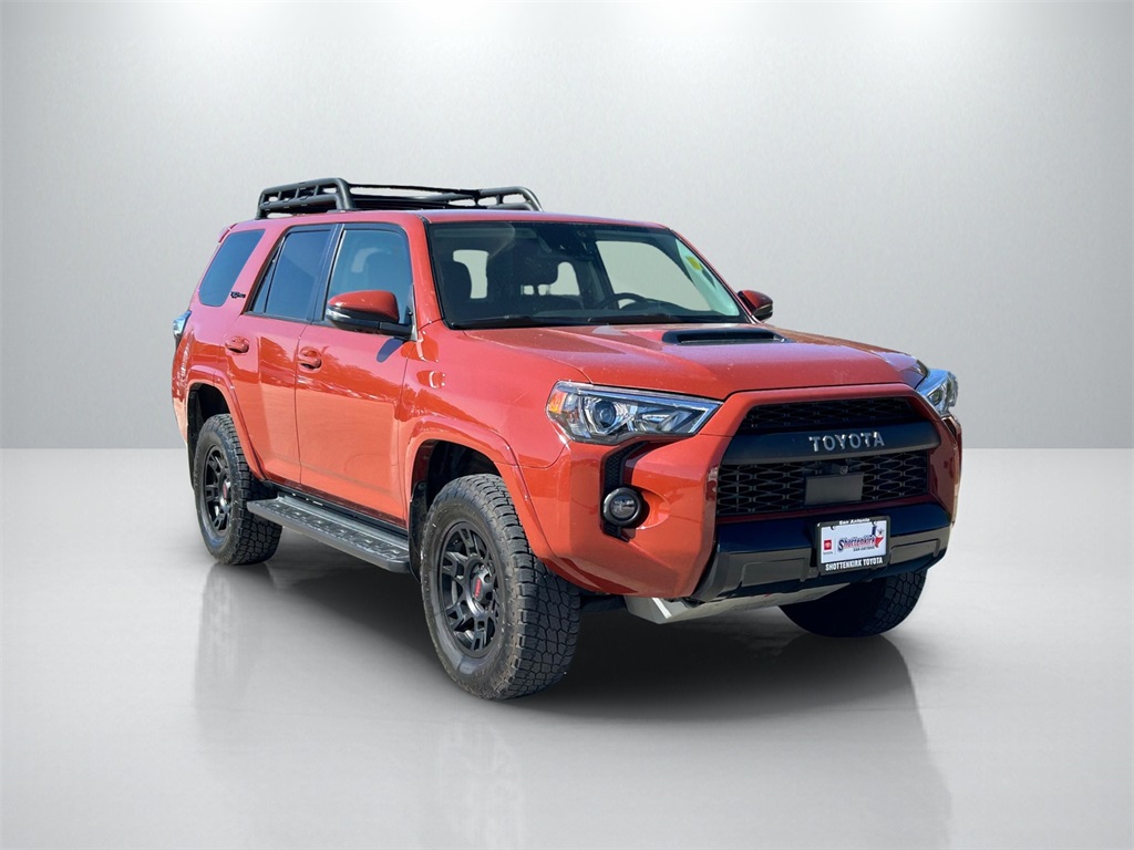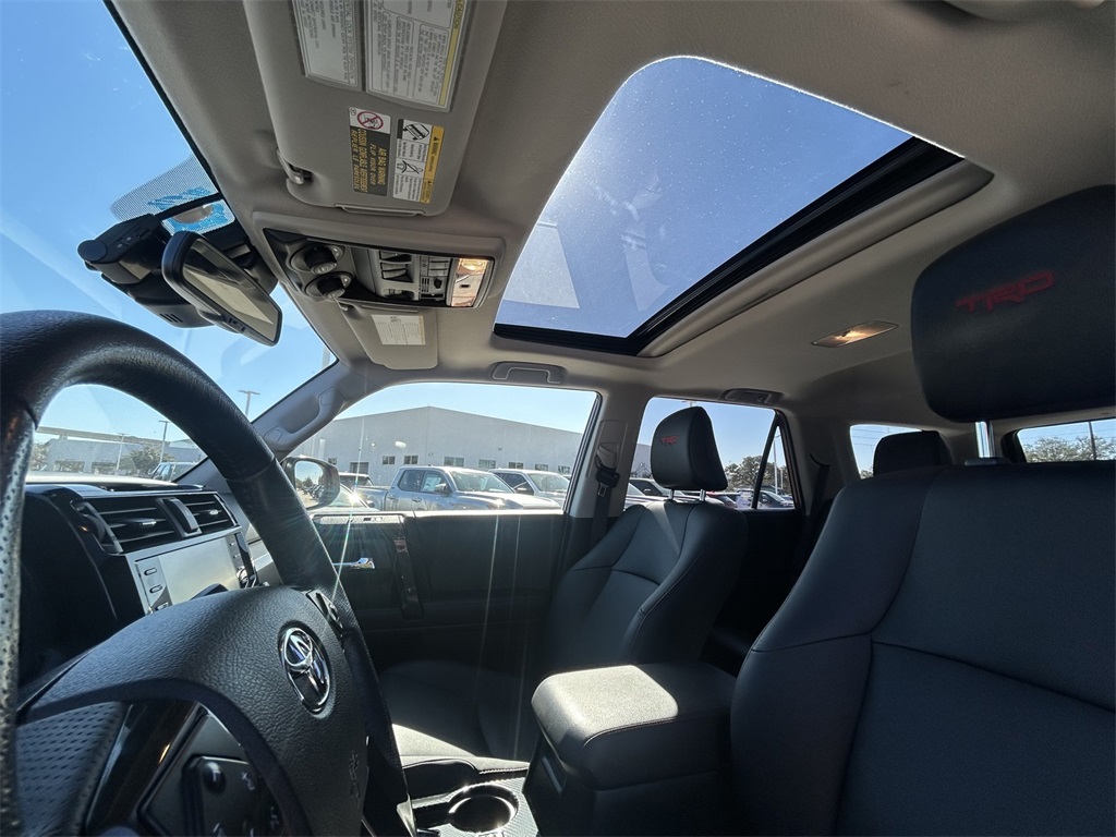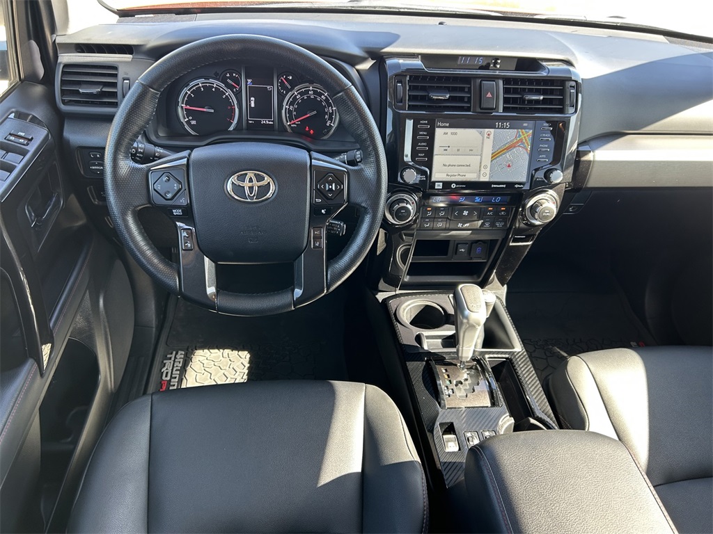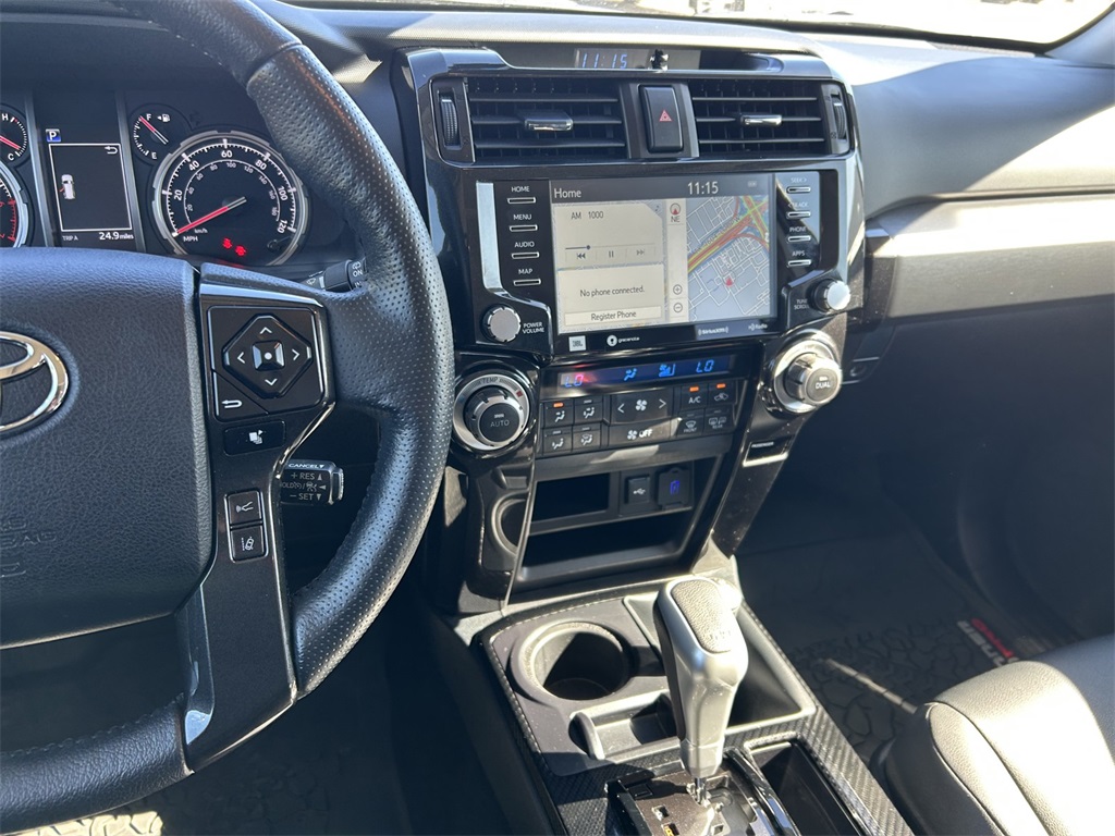 CARFAX One-Owner. Clean CARFAX. 4WD, Black/Graphite Artificial Leather, 15 Speakers, 3.727 Axle Ratio, 4-Wheel Disc Brakes, ABS brakes, Air Conditioning, Alloy wheels, AM/FM radio: SiriusXM, Anti-whiplash front head restraints, Apple CarPlay/Android Auto, Auto High-beam Headlights, Auto-dimming Rear-View mirror, Automatic temperature control, Black Lug Nuts, Brake assist, Bumpers: body-color, Compass, Driver door bin, Driver vanity mirror, Dual front impact airbags, Dual front side impact airbags, Dual Zone Auto Climate Control, Electronic Stability Control, Emergency communication system: Safety Connect (1-year trial), Exterior Parking Camera Rear, Fog Lights, Fox Shocks, Front anti-roll bar, Front Bucket Seats, Front Center Armrest, Front dual zone A/C, Front fog lights, Front reading lights, Front wheel independent suspension, Garage Door Opener, Garage door transmitter: HomeLink, Heated door mirrors, Heated Front Bucket Seats, Heated front seats, Heated Outside Rear-View Mirrors, Heated steering wheel, Illuminated entry, Knee airbag, Leather Shift Knob, Low tire pressure warning, Moonroof w/Tilt Up & Slide, Multi-Terrain Back Monitor, Navigation System, Occupant sensing airbag, Outside temperature display, Overhead airbag, Overhead console, Panic alarm, Passenger door bin, Passenger vanity mirror, Power door mirrors, Power driver seat, Power moonroof, Power passenger seat, Power steering, Power windows, Radio: Premium Audio w/JBL, Rear anti-roll bar, Rear seat center armrest, Rear window defroster, Rear window wiper, Remote keyless entry, Roof rack, Roof Rack, Security system, SofTex Seat Trim, Speed control, Speed-sensing steering, Split folding rear seat, Spoiler, Steering wheel mounted audio controls, Tachometer, Telescoping steering wheel, Tilt steering wheel, Traction control, TRD Pro All Weather Floor Liner, TRD Pro Badging, TRD Pro Exhaust, TRD Shift Knob, Trip computer, Variably intermittent wipers, Wheel Locks, Wheels: 17" Matte Black Flow-Formed TRD Alloy.