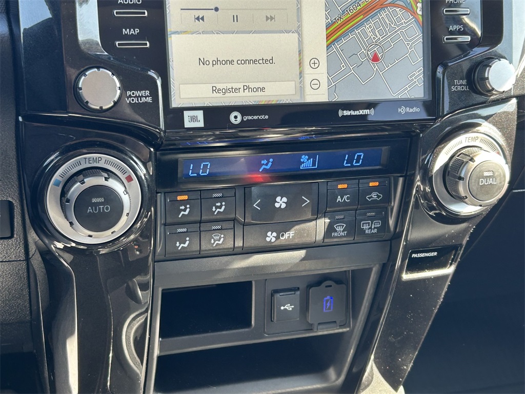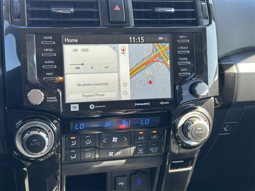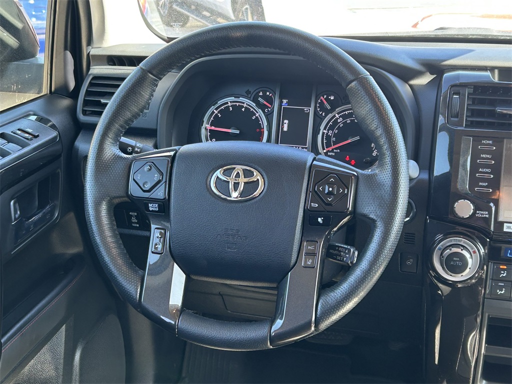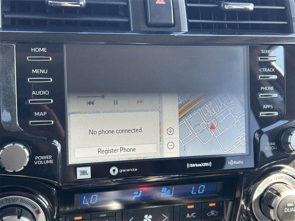 CARFAX One-Owner. Clean CARFAX. 4WD, Black/Graphite Artificial Leather, 15 Speakers, 3.727 Axle Ratio, 4-Wheel Disc Brakes, ABS brakes, Air Conditioning, Alloy wheels, AM/FM radio: SiriusXM, Anti-whiplash front head restraints, Apple CarPlay/Android Auto, Auto High-beam Headlights, Auto-dimming Rear-View mirror, Automatic temperature control, Black Lug Nuts, Brake assist, Bumpers: body-color, Compass, Driver door bin, Driver vanity mirror, Dual front impact airbags, Dual front side impact airbags, Dual Zone Auto Climate Control, Electronic Stability Control, Emergency communication system: Safety Connect (1-year trial), Exterior Parking Camera Rear, Fog Lights, Fox Shocks, Front anti-roll bar, Front Bucket Seats, Front Center Armrest, Front dual zone A/C, Front fog lights, Front reading lights, Front wheel independent suspension, Garage Door Opener, Garage door transmitter: HomeLink, Heated door mirrors, Heated Front Bucket Seats, Heated front seats, Heated Outside Rear-View Mirrors, Heated steering wheel, Illuminated entry, Knee airbag, Leather Shift Knob, Low tire pressure warning, Moonroof w/Tilt Up & Slide, Multi-Terrain Back Monitor, Navigation System, Occupant sensing airbag, Outside temperature display, Overhead airbag, Overhead console, Panic alarm, Passenger door bin, Passenger vanity mirror, Power door mirrors, Power driver seat, Power moonroof, Power passenger seat, Power steering, Power windows, Radio: Premium Audio w/JBL, Rear anti-roll bar, Rear seat center armrest, Rear window defroster, Rear window wiper, Remote keyless entry, Roof rack, Roof Rack, Security system, SofTex Seat Trim, Speed control, Speed-sensing steering, Split folding rear seat, Spoiler, Steering wheel mounted audio controls, Tachometer, Telescoping steering wheel, Tilt steering wheel, Traction control, TRD Pro All Weather Floor Liner, TRD Pro Badging, TRD Pro Exhaust, TRD Shift Knob, Trip computer, Variably intermittent wipers, Wheel Locks, Wheels: 17" Matte Black Flow-Formed TRD Alloy.