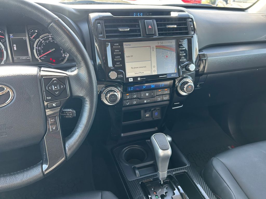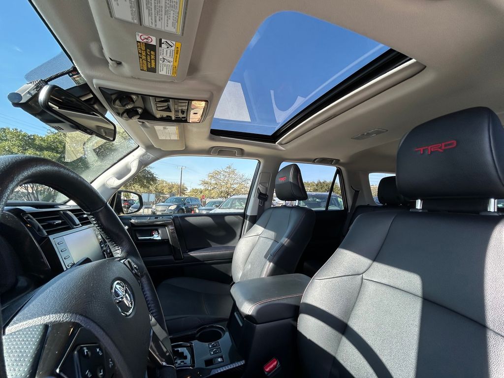 CARFAX One-Owner. Clean CARFAX. 4WD, Graphite Premium Synthetic, 15 Speakers, 3.727 Axle Ratio, 4-Wheel Disc Brakes, ABS brakes, Air Conditioning, Alloy wheels, AM/FM radio: SiriusXM, Anti-whiplash front head restraints, Apple CarPlay/Android Auto, Auto High-beam Headlights, Auto-dimming Rear-View mirror, Automatic temperature control, Black Lug Nuts, Brake assist, Bumpers: body-color, Compass, Driver door bin, Driver vanity mirror, Dual front impact airbags, Dual front side impact airbags, Dual Zone Auto Climate Control, Electronic Stability Control, Emergency communication system: Safety Connect (1-year trial), Exterior Parking Camera Rear, Fog Lights, Fox Shocks, Front anti-roll bar, Front Bucket Seats, Front Center Armrest, Front dual zone A/C, Front fog lights, Front reading lights, Front wheel independent suspension, Garage Door Opener, Garage door transmitter: HomeLink, Heated door mirrors, Heated Front Bucket Seats, Heated front seats, Heated Outside Rear-View Mirrors, Heated steering wheel, Illuminated entry, Knee airbag, Leather Shift Knob, Low tire pressure warning, Moonroof w/Tilt Up & Slide, Multi-Terrain Back Monitor, Navigation System, Occupant sensing airbag, Outside temperature display, Overhead airbag, Overhead console, Panic alarm, Passenger door bin, Passenger vanity mirror, Power door mirrors, Power driver seat, Power moonroof, Power passenger seat, Power steering, Power windows, Radio: Premium Audio w/JBL, Rear anti-roll bar, Rear seat center armrest, Rear window defroster, Rear window wiper, Remote keyless entry, Roof rack, Roof Rack, Security system, SofTex Seat Trim, Speed control, Speed-sensing steering, Split folding rear seat, Spoiler, Steering wheel mounted audio controls, Tachometer, Telescoping steering wheel, Tilt steering wheel, Traction control, TRD Pro All Weather Floor Liner, TRD Pro Badging, TRD Pro Exhaust, TRD Shift Knob, Trip computer, Variably intermittent wipers, Wheel Locks, Wheels: 17" Matte Black Flow-Formed TRD Alloy.