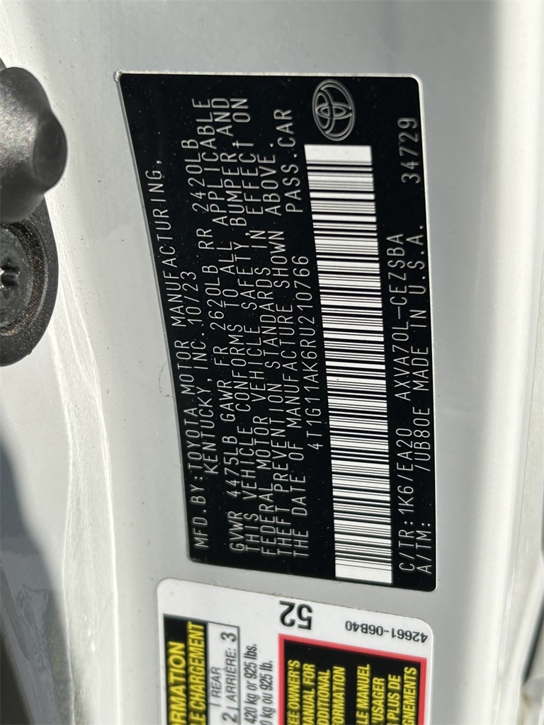 CARFAX One-Owner. Black Artificial Leather, 18" x 8J Alloy Wheels, 4-Wheel Disc Brakes, 6 Speakers, ABS brakes, Air Conditioning, Alloy wheels, AM/FM radio: SiriusXM, Apple CarPlay/Android Auto, Auto High-beam Headlights, Automatic temperature control, Brake assist, Bumpers: body-color, Delay-off headlights, Driver door bin, Driver vanity mirror, Dual front impact airbags, Dual front side impact airbags, Electronic Stability Control, Emergency communication system: Safety Connect (1-year trial), Exterior Parking Camera Rear, Four wheel independent suspension, Front anti-roll bar, Front Bucket Seats, Front Center Armrest, Front dual zone A/C, Front reading lights, Fully automatic headlights, Heated door mirrors, Illuminated entry, Knee airbag, Leather steering wheel, Low tire pressure warning, Occupant sensing airbag, Outside temperature display, Overhead airbag, Overhead console, Panic alarm, Passenger door bin, Passenger vanity mirror, Power door mirrors, Power driver seat, Power steering, Power windows, Radio data system, Radio: Audio, Rear anti-roll bar, Rear seat center armrest, Rear side impact airbag, Rear window defroster, Remote keyless entry, Security system, Speed control, Speed-sensing steering, Split folding rear seat, Spoiler, Sport SofTex Seat Trim w/Fabric Inserts, Steering wheel mounted audio controls, Tachometer, Telescoping steering wheel, Tilt steering wheel, Traction control, Trip computer, Turn signal indicator mirrors, Variably intermittent wipers.Priced below KBB Fair Purchase Price! 28/39 City/Highway MPG2024 Ice Cap Toyota Camry 2.5L I4 DOHC 16V FWD SE---------------------------------------------------------------------------------------------------------------------------------------------------------------------------------------------------------------------------------------------------------------------The all new Shottenkirk Toyota of San Antonio. We are part of the Family owned Shottenkirk Auto Group that has been exceeding our customer's expectations in sales and service for over 60 years. All Pre Owned vehicles go through a complete 120 point inspection and complete detail. We look forward to earning your business. Previously Alamo Toyota---call 210-494-1604 for details.Plus Tax, title, license, document fee extra. New/Pre-owned vehicles come with $3696 tint, nitrogen, and VIP Customer Care: Dent/Ding repair. Tire/Wheel Protection. Windshield Repair. Key Replacement (new vehicles) and Paint enhancement. Complimentary 6 Month / 6,000 mile Powertrain Coverage and AC Warranty for pre-owned. AC Warranty and Powertrain excludes some vehicles – see dealer for details. **Under 97,000 miles will receive a 6 month/6,000 miles powertrain warranty. Vehicles over 97,001-119,999 will receive a 3-month/3000 miles powertrain warranty. No coverage on vehicles over 120,000 miles. Some restrictions apply; please call us for a copy of the contract for specific information. Certain restrictions may apply. See dealer for details. ** Due to current market volatility, we are pricing our vehicles immediately following acquisition. All vehicles will be reconditioned and made ready for sale. Price will be the advertised price plus, TT&L, Registration, and $225.00 dealer documentation fee, any other fees or charges that are allowed or prescribed by law. Any quoted financing terms are subject to final lender approval and are only estimates.