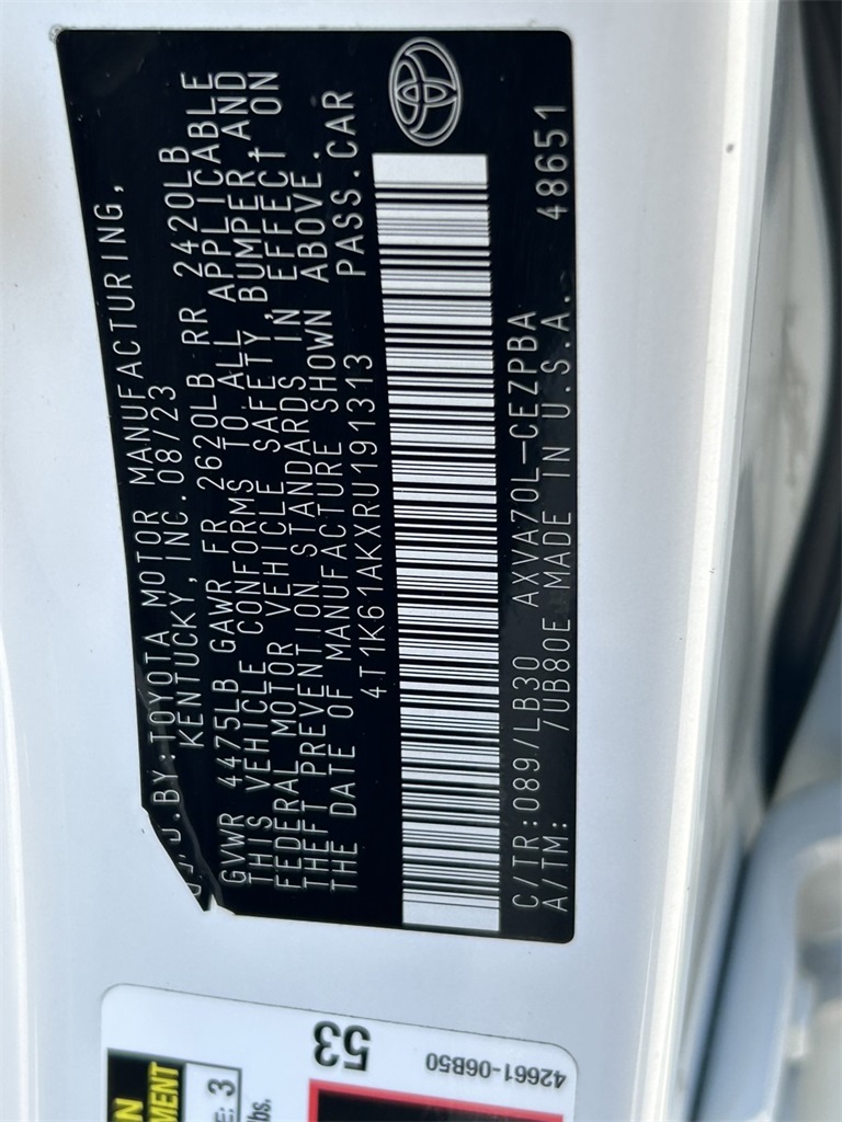 2024 Wind Chill Pearl Toyota Camry 2.5L I4 DOHC 16V FWD XSE