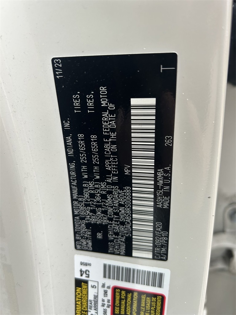 CARFAX One-Owner. Clean CARFAX. 2.5L 4-Cylinder, 18" Aluminum Alloy Wheels, 3rd row seats: split-bench, 4-Wheel Disc Brakes, 6 Speakers, ABS brakes, Air Conditioning, All Weather Floor Liners/Cargo Tray (TMS), Alloy wheels, AM/FM radio: SiriusXM, Apple CarPlay/Android Auto, Auto High-beam Headlights, Auto-dimming Rear-View mirror, Automatic temperature control, Black Emblem Overlays (TMS), Brake assist, Bumpers: body-color, Cargo Net (TMS), Cargo Tote (TMS), Cross Bars (TMS), Dashcam (TMS), Delay-off headlights, Door Edge Guards (TMS), Driver door bin, Driver vanity mirror, Dual front impact airbags, Dual front side impact airbags, Electronic Stability Control, Emergency Assistance Kit (TMS), Emergency communication system: Safety Connect (up to 10-year trial subscription), Exterior Parking Camera Rear, First Aid Kit (TMS), Four wheel independent suspension, Front anti-roll bar, Front Bucket Seats, Front Center Armrest, Front dual zone A/C, Front reading lights, Fully automatic headlights, Garage door transmitter: HomeLink, Heated door mirrors, Heated Front Seats, Heated front seats, Illuminated entry, Key Glove Set (TMS), Knee airbag, Leather Shift Knob, Leather steering wheel, Logo Side Puddle Lamp (TMS), Low tire pressure warning, Mudguards (TMS), Navigation system: Drive Connect Cloud Navigation (1-year trial subscription), Occupant sensing airbag, Outside temperature display, Overhead airbag, Overhead console, Paint Protection Film (TMS), Panic alarm, Panoramic Roof, Passenger door bin, Passenger vanity mirror, Power door mirrors, Power driver seat, Power Liftgate, Power passenger seat, Power steering, Power windows, Radio: 12.3" Toyota Audio Multimedia, Rear air conditioning, Rear anti-roll bar, Rear reading lights, Rear window defroster, Rear window wiper, Reclining 3rd row seat, Remote keyless entry, Security system, SofTex Seat Trim, Speed control, Speed-sensing steering, Split folding rear seat, Spoiler, Steering wheel mounted audio controls, TBD Axle Ratio, Telescoping steering wheel, Tilt steering wheel, Tow Hitch (TMS), Traction control, Trip computer, Turn signal indicator mirrors, Variably intermittent wipers, Wheel Locks (TMS).