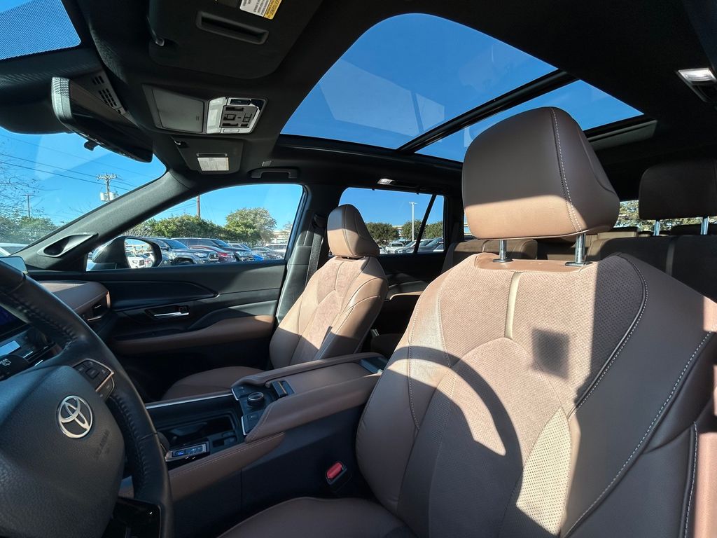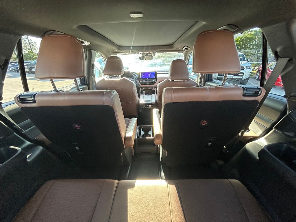 CARFAX One-Owner. 2.4L 4-Cylinder VVT-i, 11 Speakers, 20" Aluminum Alloy Wheels, 3rd row seats: split-bench, 4-Wheel Disc Brakes, ABS brakes, Air Conditioning, Alloy wheels, AM/FM radio: SiriusXM, Apple CarPlay/Android Auto, Auto High-beam Headlights, Auto-dimming Rear-View mirror, Automatic temperature control, Brake assist, Bumpers: body-color, Carpet Floor Mats/Carpet Cargo Mat (TMS), Delay-off headlights, Driver door bin, Driver vanity mirror, Dual front impact airbags, Dual front side impact airbags, Electronic Stability Control, Emergency communication system: Safety Connect (up to 10-year trial subscription), Exterior Parking Camera Rear, Four wheel independent suspension, Front anti-roll bar, Front Bucket Seats, Front Center Armrest, Front dual zone A/C, Front fog lights, Front reading lights, Fully automatic headlights, Garage door transmitter: HomeLink, Heads-Up Display, Heated & Ventilated Front Seats w/Memory, Heated door mirrors, Heated front seats, Heated rear seats, Heated steering wheel, Illuminated entry, Knee airbag, Leather Shift Knob, Leather steering wheel, Low tire pressure warning, Memory seat, Navigation system: Drive Connect Cloud Navigation (1-year trial subscription), Occupant sensing airbag, Outside temperature display, Overhead airbag, Overhead console, Panic alarm, Passenger door bin, Passenger vanity mirror, Power door mirrors, Power driver seat, Power Liftgate, Power moonroof, Power passenger seat, Power steering, Power windows, Radio: 12.3" Toyota Audio Multimedia w/JBL Premium, Rain sensing wipers, Rear air conditioning, Rear anti-roll bar, Rear reading lights, Rear window defroster, Rear window wiper, Reclining 3rd row seat, Remote keyless entry, Security system, Speed control, Speed-sensing steering, Split folding rear seat, Spoiler, Steering wheel mounted audio controls, TBD Axle Ratio, Telescoping steering wheel, Tilt steering wheel, Traction control, Trip computer, Turn signal indicator mirrors, Ultrasuede/Leather Seat Trim, Variably intermittent wipers, Ventilated front seats, Ventilated rear seats.