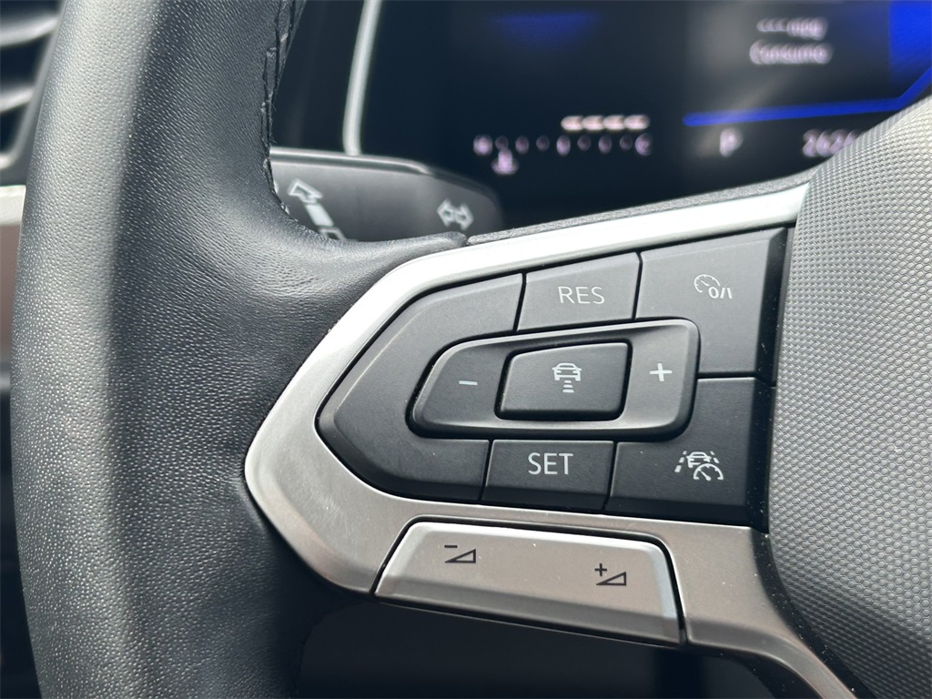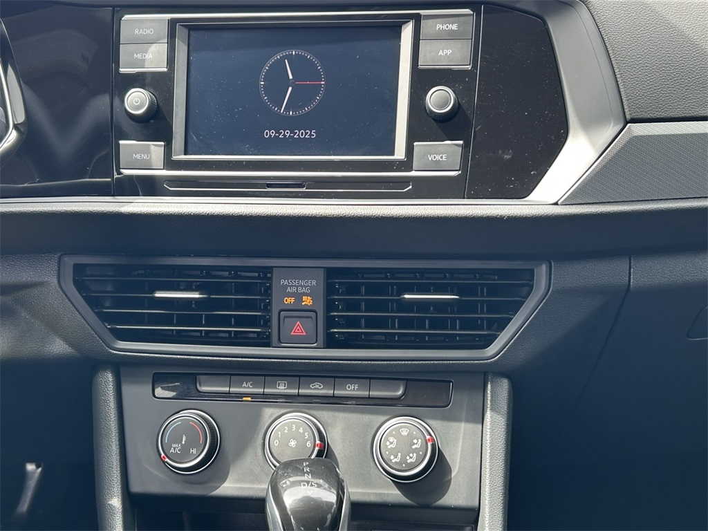 Clean CARFAX. Titan Black w/V-Tex Leatherette Seat Trim, 4 Speakers, 4-Wheel Disc Brakes, ABS brakes, Active Blind Spot Monitor, Air Conditioning, Alloy wheels, Auto-dimming Rear-View mirror, Brake assist, Bumpers: body-color, Cloth Seat Trim, Delay-off headlights, Driver door bin, Driver vanity mirror, Dual front impact airbags, Dual front side impact airbags, Electronic Stability Control, Emergency communication system: VW Car-Net Safe & Secure 5-year, Exterior Parking Camera Rear, Front anti-roll bar, Front Bucket Seats, Front Center Armrest, Front Seats, Front wheel independent suspension, Fully automatic headlights, Heated door mirrors, Illuminated entry, Leather Shift Knob, Leather steering wheel, Low tire pressure warning, Occupant sensing airbag, Outside temperature display, Overhead airbag, Overhead console, Panic alarm, Passenger door bin, Passenger vanity mirror, Power door mirrors, Power steering, Power windows, Radio data system, Radio: MIB3 Composition Color w/6.5" Touchscreen, Rain sensing wipers, Rear anti-roll bar, Rear reading lights, Rear window defroster, Remote keyless entry, Speed control, Speed-sensing steering, Split folding rear seat, Steering wheel mounted audio controls, Tachometer, Telescoping steering wheel, Tilt steering wheel, Traction control, Trip computer, Variably intermittent wipers, Wheels: 16" 2-Tone Machined Alloy.