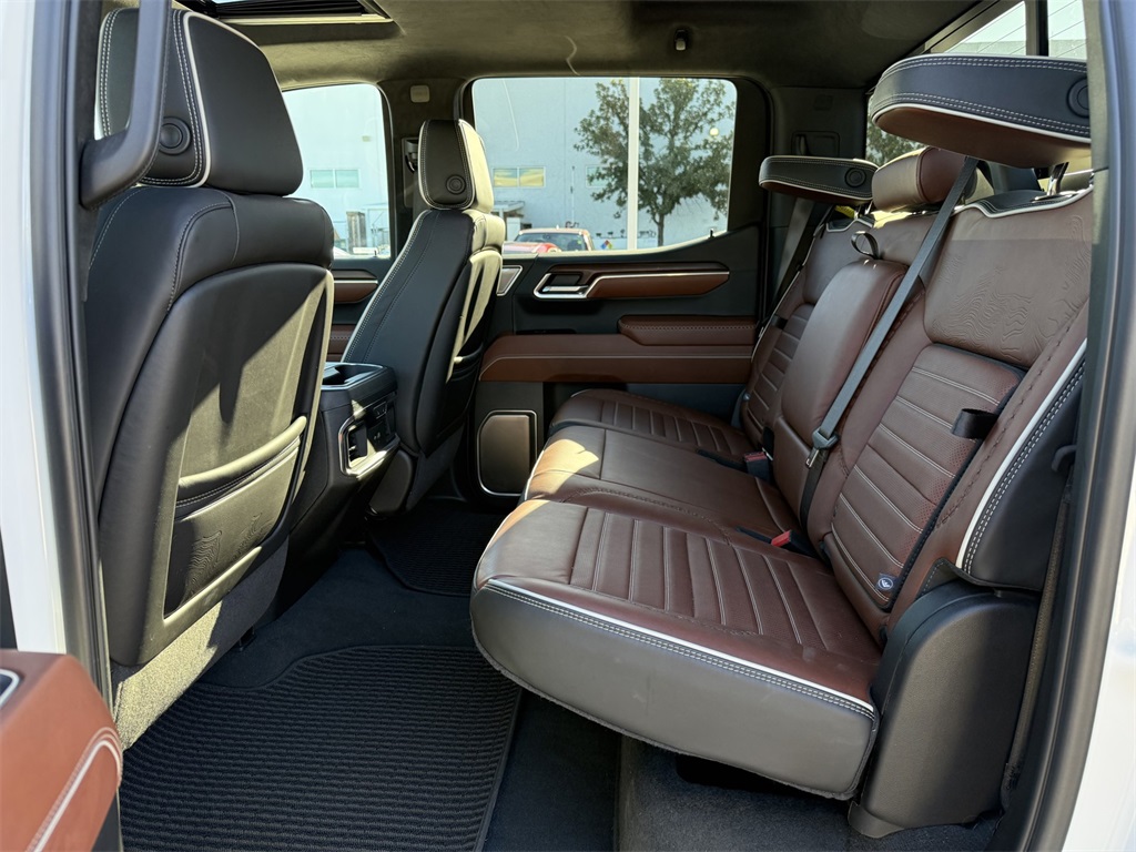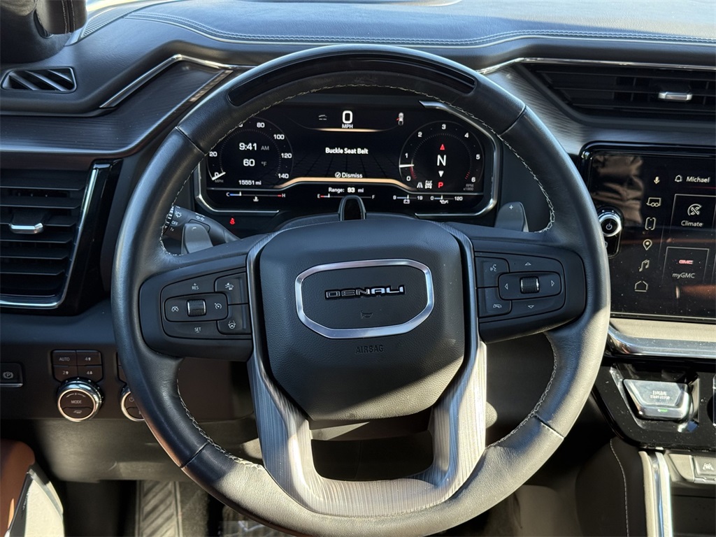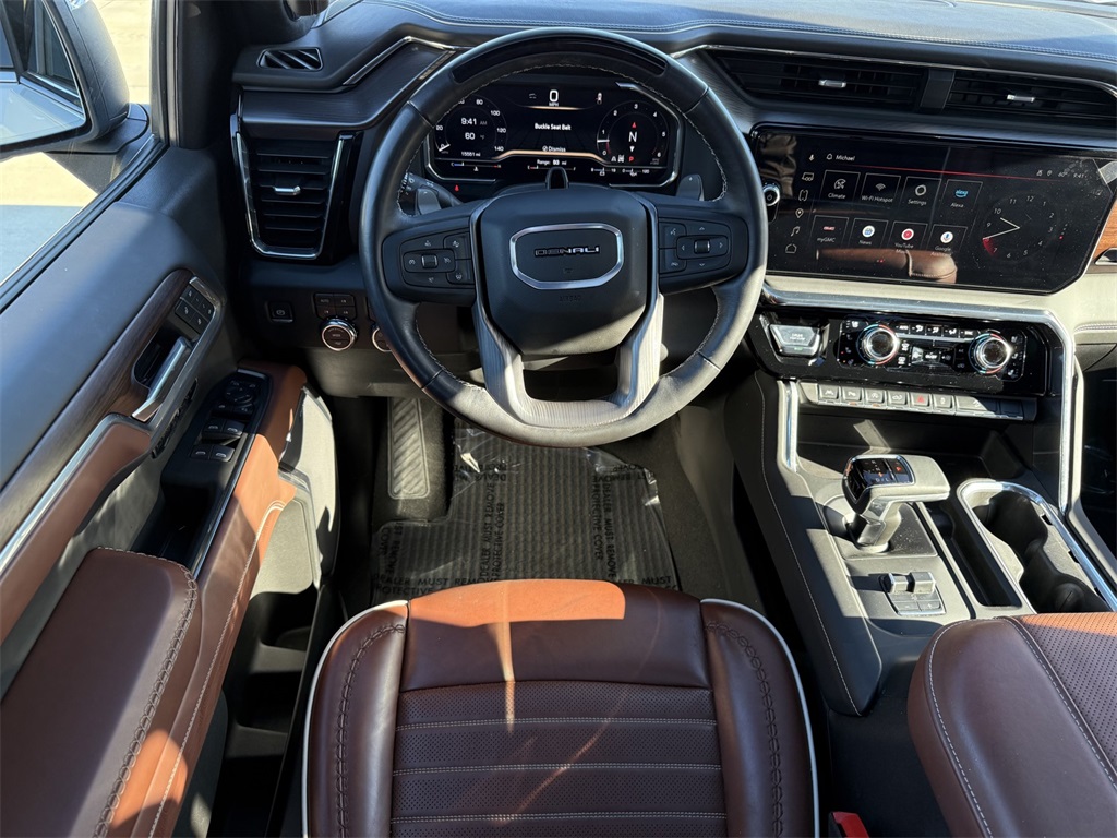 CARFAX One-Owner. Clean CARFAX. 10-Speed Automatic, 4WD, Alpine Umber Leather, 12 Speakers, 120-Volt Bed Mounted Power Outlet, 120-Volt Interior Power Outlet, 16-Way Power Driver Seat Adjuster w/Lumbar, 16-Way Power Passenger Seat Adjuster w/Lumbar, 170 Amp Alternator, 2 Charge/Data USB Ports Inside Center Console, 2 Type-C Charge-Only Rear USB Ports, 2 USB Ports, 3.23 Rear Axle Ratio, 4-Wheel Disc Brakes, ABS brakes, Adaptive suspension, Air Conditioning, Alloy wheels, AM/FM radio: SiriusXM with 360L, Apple CarPlay/Android Auto, Auto High-beam Headlights, Auto-dimming door mirrors, Auto-dimming Rear-View mirror, Auto-Locking Rear Differential, Automatic temperature control, Bed View Camera, Bose Premium Series w/12-Speaker System, Brake assist, Buckle to Drive, Bumpers: body-color, Chrome Recovery Hooks, Color-Keyed Carpeting Floor Covering, Compass, Deep-Tinted Glass, Delay-off headlights, Denali Premium Suspension w/Adaptive Ride Control, Driver door bin, Driver Memory, Driver vanity mirror, Dual Active Exhaust, Dual front impact airbags, Dual front side impact airbags, Electric Rear-Window Defogger, Electronic Stability Control, Emergency communication system: OnStar, Enhanced Automatic Emergency Braking, Floor-Mounted Center Console, Following Distance Indicator, Forward Collision Alert, Front anti-roll bar, Front Bucket Seats, Front Center Armrest, Front dual zone A/C, Front fog lights, Front License Plate Kit, Front Pedestrian Braking, Front Rain-Sensing Wipers, Front reading lights, Front wheel independent suspension, Full Grain Leather Seat Trim, Fully automatic headlights, Garage door transmitter, Genuine wood console insert, Genuine wood dashboard insert, Genuine wood door panel insert, HD Surround Vision, Heads-Up Display, Heated 2nd Row Outboard Seats, Heated door mirrors, Heated Driver & Front Outboard Passenger Seating, Heated front seats, Heated rear seats, Heated steering wheel, Heavy-Duty Air Filter, High Gloss Black Header w/Signature Denali Grille, Hill Descent Control, Hitch Guidance, Hitch View, Illuminated entry, In-Vehicle Trailering System App, Integrated Trailer Brake Controller, IntelliBeam Automatic High Beam On/Off, Keyless Open & Start, LED Cargo Area Lighting, Low tire pressure warning, Memory seat, Multicolor 15" Diagonal Head-Up Display, MultiPro Tailgate Audio System by Kicker (LPO), Navigation System, Occupant sensing airbag, OnStar Services Capable, Outside temperature display, Overhead airbag, Overhead console, Panic alarm, Passenger door bin, Passenger vanity mirror, Perimeter Lighting, Power Door Locks, Power door mirrors, Power driver seat, Power Front Passenger Windows w/Express Up/Down, Power Front Windows w/Driver Express Up/Down, Power moonroof, Power passenger seat, Power Rake & Telescoping Steering Column, Power Rear Windows w/Express Down, Power Sliding Rear Window w/Rear Defogger, Power steering, Power Sunroof, Power windows, Preferred Equipment Group 5SB, Push Button Start, Radio data system, Radio: Premium GMC Infotainment Audio System, Rain sensing wipers, Rear Cross Traffic Braking, Rear Pedestrian Detection, Rear reading lights, Rear seat center armrest, Rear step bumper, Rear Wheelhouse Liners, Rear window defroster, Remote keyless entry, Remote Vehicle Starter System, Safety Alert Seat, Security system, SiriusXM w/360L Trial Subscription, Speed control, Speed-sensing steering, Split folding rear seat, Spray-On Pickup Bedliner w/GMC Logo, Steering Wheel Audio Controls, Steering wheel mounted audio controls, Super Cruise, Tachometer, Telescoping steering wheel, Theft Deterrent System (Unauthorized Entry), Tilt steering wheel, Traction control, Trailer Camera Provisions, Trailer Side Blind Zone Alert, Trailer Tire Pressure Monitor System, Trailering Package, Trip computer, Ultrasonic Front & Rear Park Assist, Universal Home Remote, Variably intermittent wipers, Ventilated Driver & Front Passenger Seats, Ventilated front seats, Voltmeter, Wheel Locks (Set of 4) (LPO), Wheels: