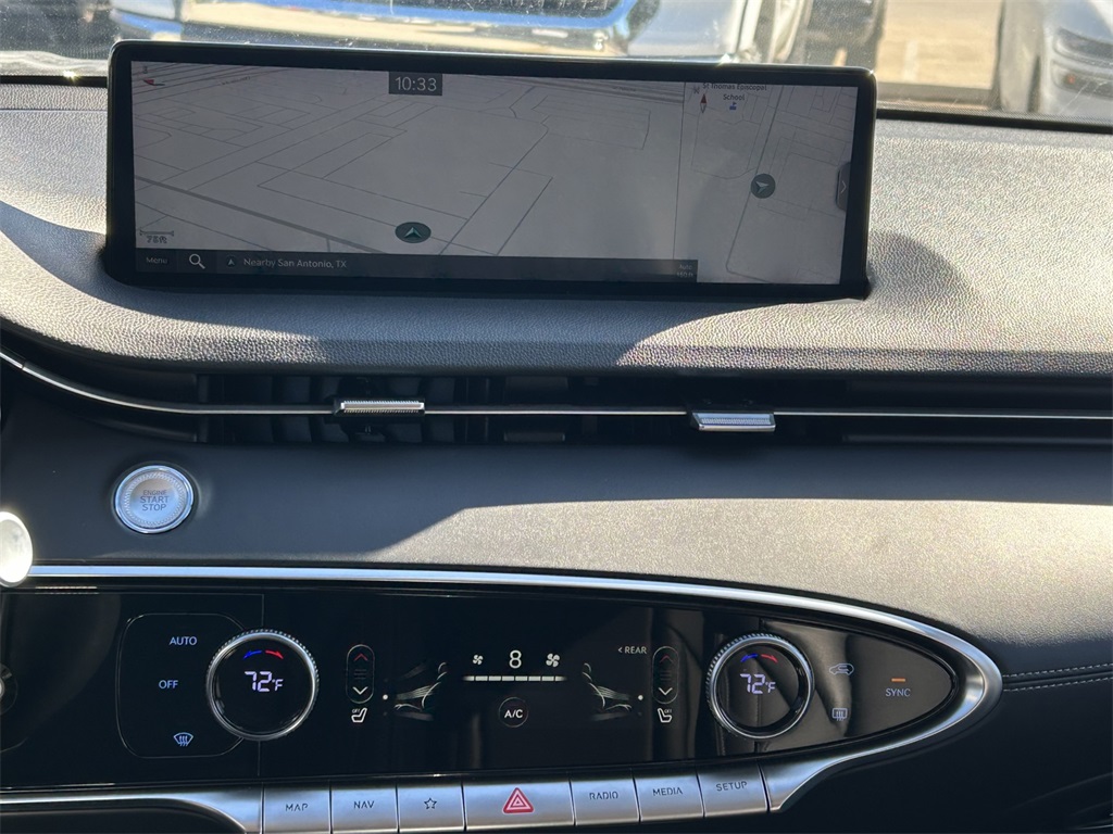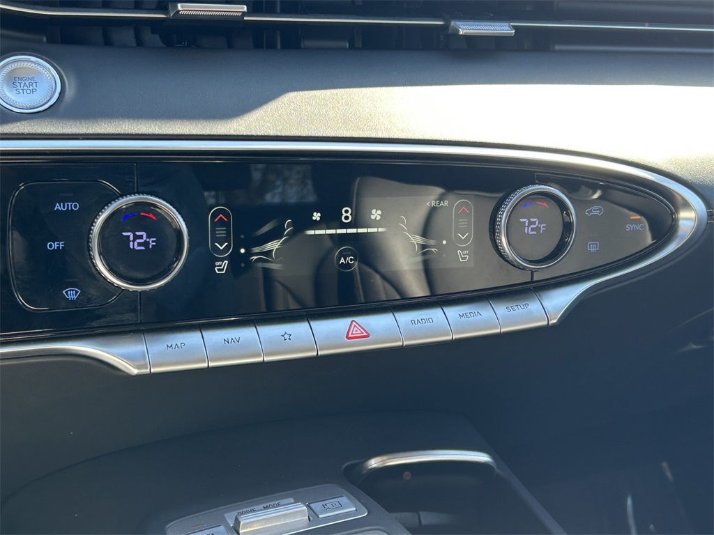CARFAX One-Owner. Clean CARFAX. 4-Wheel Disc Brakes, 9 Speakers, ABS brakes, Air Conditioning, Alloy wheels, AM/FM radio: SiriusXM, Android Auto & Apple CarPlay, Anti-whiplash front head restraints, Auto High-beam Headlights, Auto-dimming Rear-View mirror, Automatic temperature control, Brake assist, Bumpers: body-color, Delay-off headlights, Driver door bin, Driver vanity mirror, Dual front impact airbags, Dual front side impact airbags, Electronic Stability Control, Emergency communication system: Genesis Connected Services, Exterior Parking Camera Rear, Four wheel independent suspension, Front anti-roll bar, Front Bucket Seats, Front Center Armrest w/Storage, Front dual zone A/C, Front reading lights, Fully automatic headlights, Garage door transmitter: HomeLink, Heated door mirrors, Heated Front Bucket Seats, Heated front seats, Illuminated entry, Knee airbag, Leather steering wheel, Leatherette Seating Surfaces, Low tire pressure warning, Navigation System, Occupant sensing airbag, Outside temperature display, Overhead airbag, Overhead console, Panic alarm, Passenger door bin, Passenger vanity mirror, Power door mirrors, Power driver seat, Power Liftgate, Power passenger seat, Power steering, Power windows, Radio: 14.5" Navigation System w/AM/FM/HD Radio, Rain sensing wipers, Rear anti-roll bar, Rear Parking Sensors, Rear reading lights, Rear seat center armrest, Rear window defroster, Rear window wiper, Remote keyless entry, Security system, Speed control, Speed-sensing steering, Speed-Sensitive Wipers, Split folding rear seat, Spoiler, Steering wheel mounted audio controls, Tachometer, Telescoping steering wheel, Traction control, Trip computer, Turn signal indicator mirrors, Variably intermittent wipers, Wheels: 19" Dark Hyper Silver Alloy.