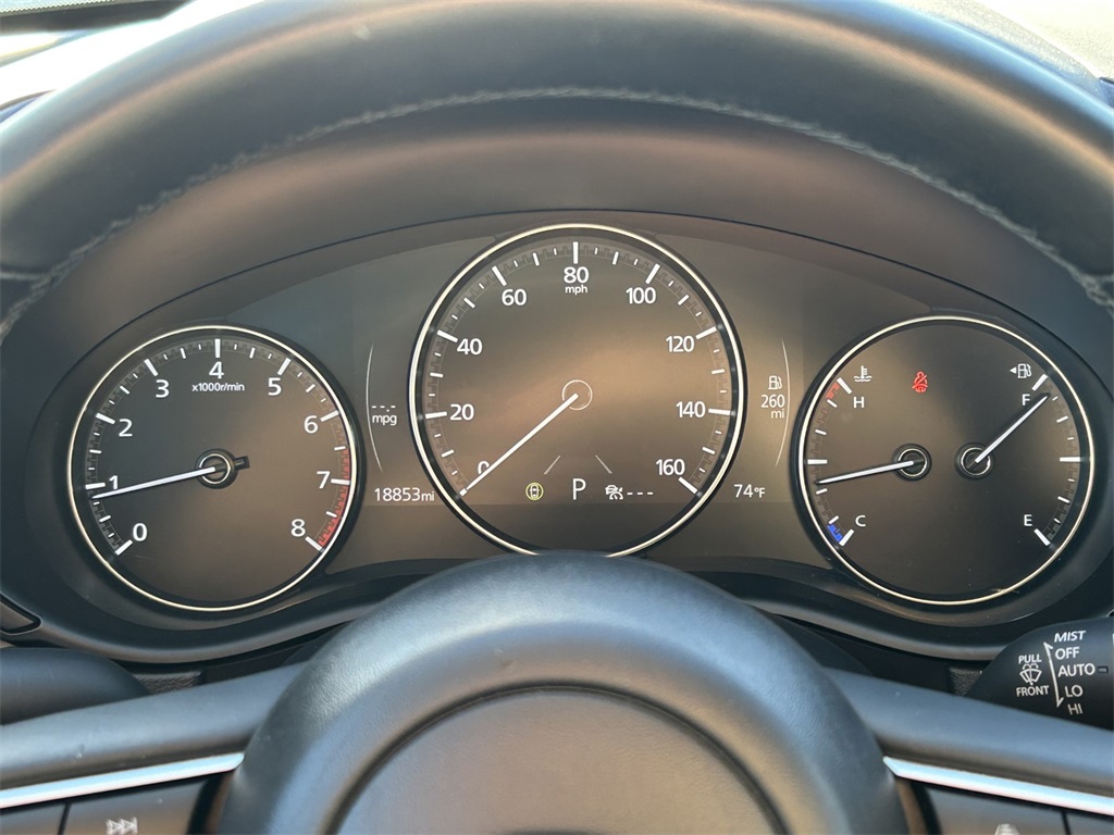CARFAX One-Owner. Clean CARFAX. 4-Wheel Disc Brakes, 6 Speakers, ABS brakes, Air Conditioning, Alloy wheels, AM/FM radio, AppLink/Apple CarPlay and Android Auto, Auto High-beam Headlights, Automatic temperature control, Brake assist, Bumpers: body-color, Compass, Delay-off headlights, Driver door bin, Driver vanity mirror, Dual front impact airbags, Dual front side impact airbags, Electronic Stability Control, Emergency communication system: Mazda Connected Services (3-year trial subscription included), Exterior Parking Camera Rear, Front anti-roll bar, Front Bucket Seats, Front Center Armrest, Front dual zone A/C, Front reading lights, Front wheel independent suspension, Fully automatic headlights, Heated door mirrors, Illuminated entry, Knee airbag, Leather Shift Knob, Leather steering wheel, Leatherette Seat Trim, Low tire pressure warning, MAZDA CONNECT Infotainment System, Occupant sensing airbag, Outside temperature display, Overhead airbag, Overhead console, Panic alarm, Passenger door bin, Passenger vanity mirror, Power door mirrors, Power steering, Power windows, Radio data system, Radio: AM/FM Audio System, Rain sensing wipers, Rear seat center armrest, Rear side impact airbag, Rear window defroster, Rear window wiper, Remote keyless entry, Speed control, Speed-sensing steering, Split folding rear seat, Spoiler, Steering wheel mounted audio controls, Tachometer, Telescoping steering wheel, Tilt steering wheel, Traction control, Trip computer, Turn signal indicator mirrors, Variably intermittent wipers, Wheels: 18" x 7J Aluminum Alloy.