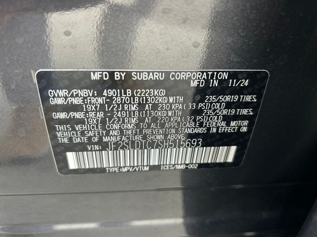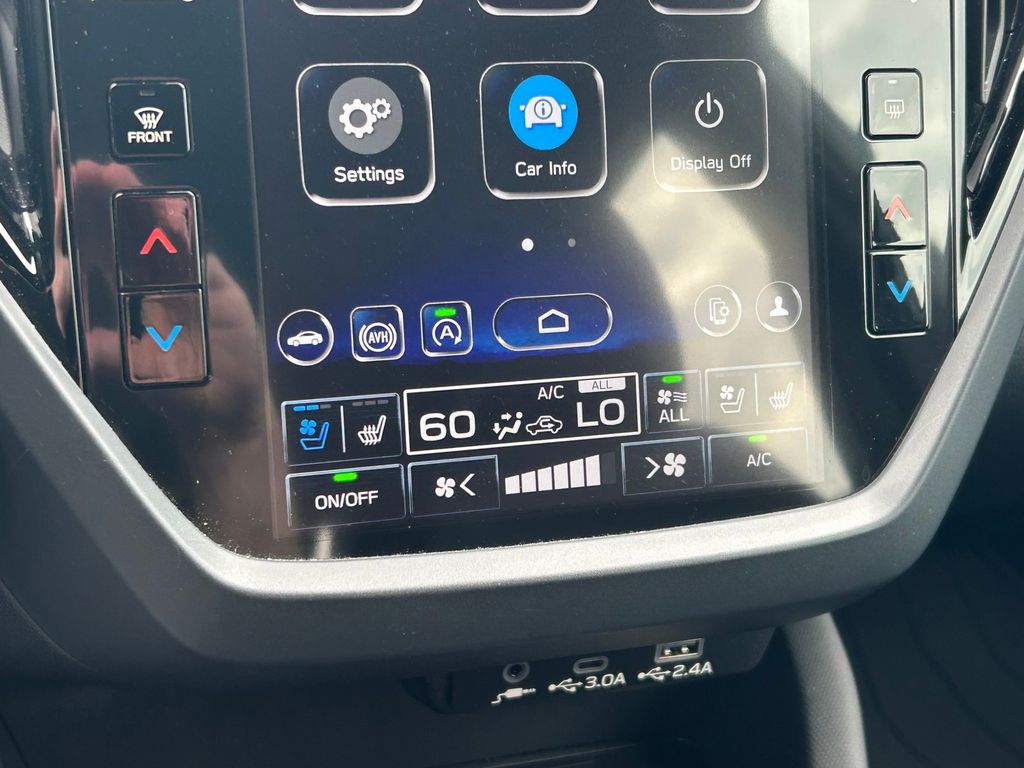 Clean CARFAX. 11 Speakers, 4-Wheel Disc Brakes, ABS brakes, Air Conditioning, All-Weather Floor Liners, Alloy wheels, AM/FM radio: SiriusXM with 360L, Anti-whiplash front head restraints, Auto High-beam Headlights, Auto-Dimming Exterior Mirror w/Approach Light, Automatic temperature control, Brake assist, Bumpers: body-color, Cargo Sidewall Protector, Cargo Tray, Driver door bin, Driver vanity mirror, Dual front impact airbags, Dual front side impact airbags, Electronic Stability Control, Emergency communication system: MySubaru Safety (3-year free trial), Exterior Parking Camera Rear, Four wheel independent suspension, Front anti-roll bar, Front Bucket Seats, Front Center Armrest, Front dual zone A/C, Front fog lights, Front reading lights, Fully automatic headlights, harman/kardon® Speakers, Heated & Ventilated Front Bucket Seats, Heated door mirrors, Heated front seats, Heated rear seats, Heated steering wheel, HVAC memory, Illuminated entry, Knee airbag, Leather steering wheel, LED Upgrade, Low tire pressure warning, Memory seat, Navigation System, Occupant sensing airbag, Outside temperature display, Overhead airbag, Overhead console, Panic alarm, Passenger door bin, Passenger vanity mirror, Perforated Leather-Trimmed Upholstery, Power door mirrors, Power driver seat, Power Liftgate, Power moonroof: Panoramic, Power passenger seat, Power steering, Power windows, Radio data system, Radio: Subaru 11.6" Multimedia Navigation System, Rear anti-roll bar, Rear Bumper Cover, Rear seat center armrest, Rear Seatback Protector, Rear window defroster, Rear window wiper, Remote keyless entry, Security system, Speed control, Speed-sensing steering, Split folding rear seat, Spoiler, Standard Model, Steering wheel mounted audio controls, Tachometer, Telescoping steering wheel, Tilt steering wheel, Traction control, Trip computer, Turn signal indicator mirrors, Variably intermittent wipers, Ventilated front seats, Wheels: 19" x 7.5 J Dark Gray Aluminum-Alloy.