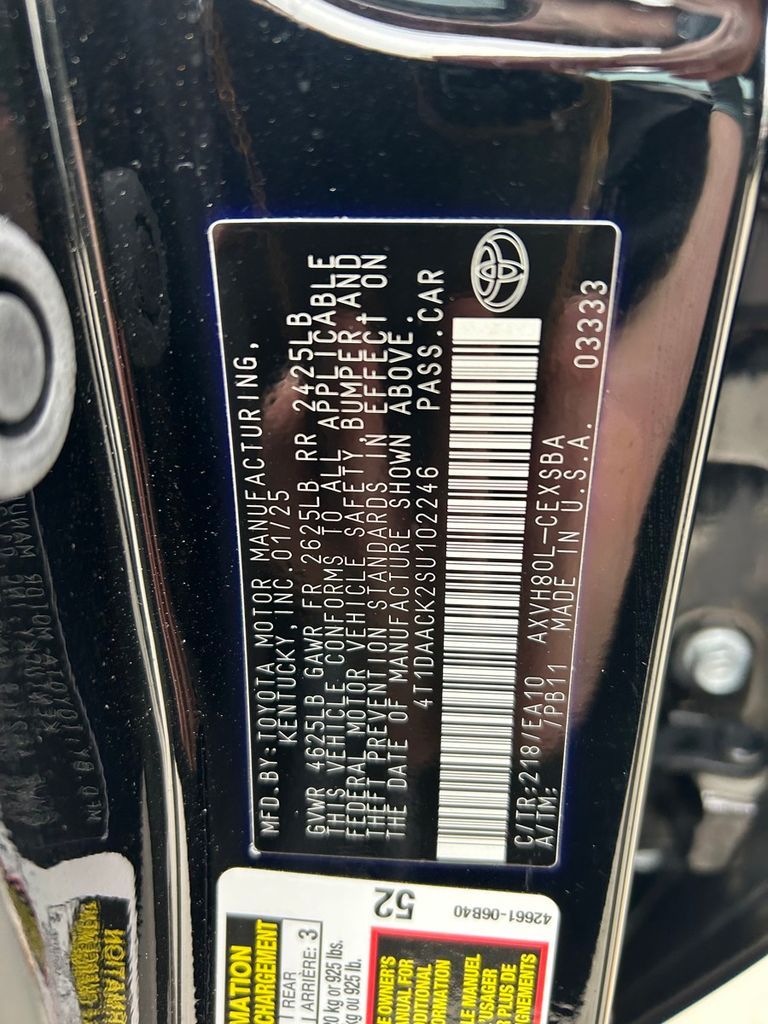 2025 Midnight Black Toyota Camry 2.5L 4-Cylinder 16V DOHC FWD SE