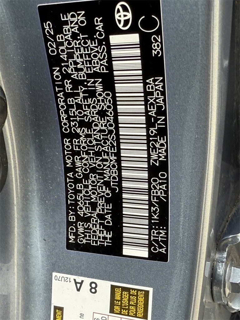 Clean CARFAX. 1.8L DOHC 16V VVT, 4-Wheel Disc Brakes, 6 Speakers, ABS brakes, Air Conditioning, AM/FM radio: SiriusXM, Auto High-beam Headlights, Automatic temperature control, Brake assist, Dual front impact airbags, Dual front side impact airbags, Electronic Stability Control, Emergency communication system: Safety Connect (up to 10-year trial subscription), Exterior Parking Camera Rear, Four wheel independent suspension, Front anti-roll bar, Knee airbag, Low tire pressure warning, Occupant sensing airbag, Overhead airbag, Power steering, Power windows, Radio data system, Radio: 8" Toyota Audio Multimedia, Rear anti-roll bar, Rear side impact airbag, Rear window defroster, Remote keyless entry, Steering wheel mounted audio controls, Traction control.