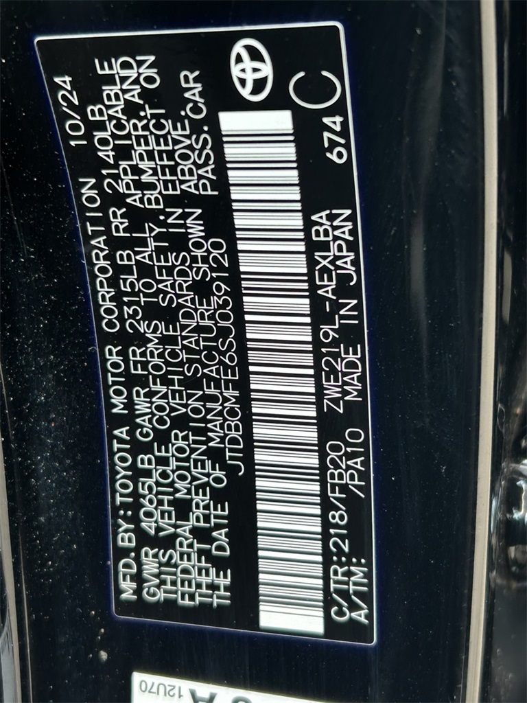 CARFAX One-Owner. Clean CARFAX. 1.8L DOHC 16V VVT, 4-Wheel Disc Brakes, 6 Speakers, ABS brakes, Air Conditioning, AM/FM radio: SiriusXM, Apple CarPlay/Android Auto, Auto High-beam Headlights, Automatic temperature control, Brake assist, Bumpers: body-color, Delay-off headlights, Driver door bin, Driver vanity mirror, Dual front impact airbags, Dual front side impact airbags, Electronic Stability Control, Emergency communication system: Safety Connect (up to 10-year trial subscription), Exterior Parking Camera Rear, Four wheel independent suspension, Front anti-roll bar, Front Bucket Seats, Front Center Armrest, Front reading lights, Fully automatic headlights, Illuminated entry, Knee airbag, Low tire pressure warning, Occupant sensing airbag, Outside temperature display, Overhead airbag, Panic alarm, Passenger door bin, Passenger vanity mirror, Power door mirrors, Power steering, Power windows, Premium Fabric Seat Trim, Radio data system, Radio: 8" Toyota Audio Multimedia, Rear anti-roll bar, Rear seat center armrest, Rear side impact airbag, Rear window defroster, Remote keyless entry, Speed control, Split folding rear seat, Steering wheel mounted audio controls, Tachometer, Telescoping steering wheel, Tilt steering wheel, Traction control, Trip computer, Wheels: 16" Wide Vent Steel.