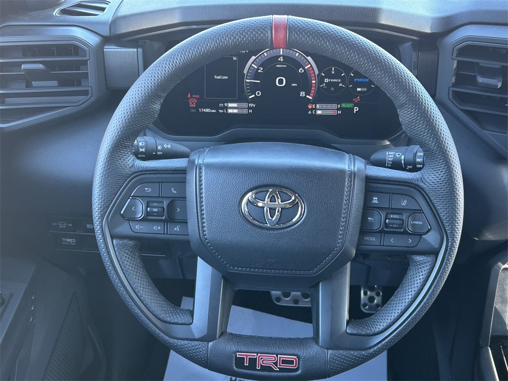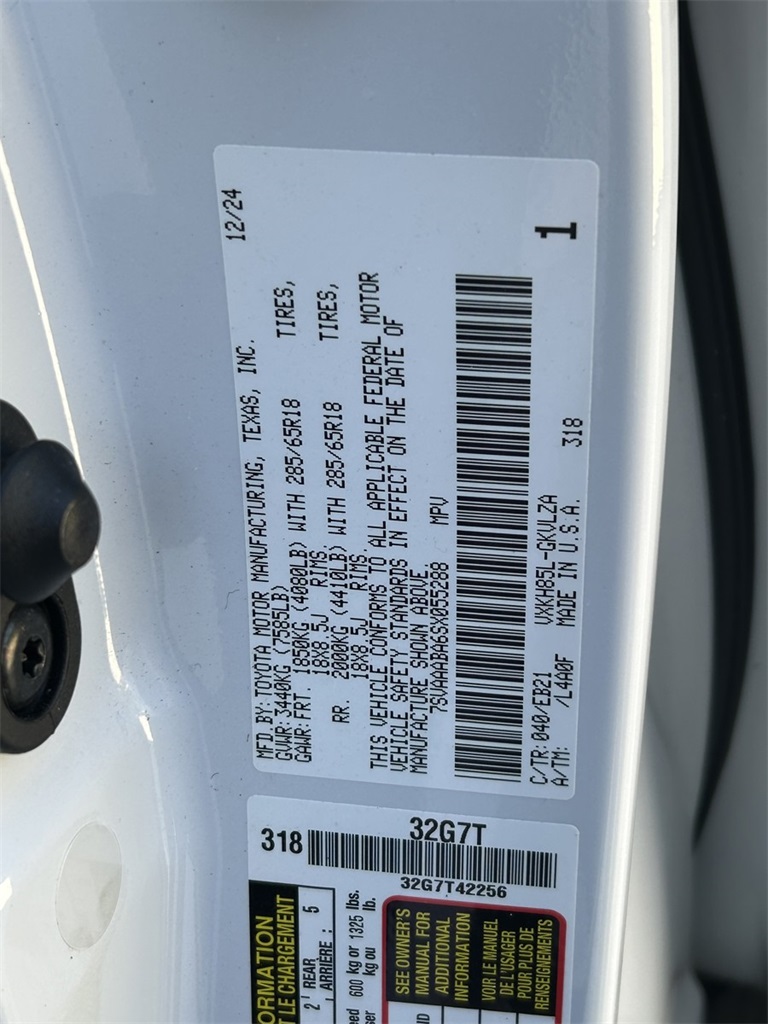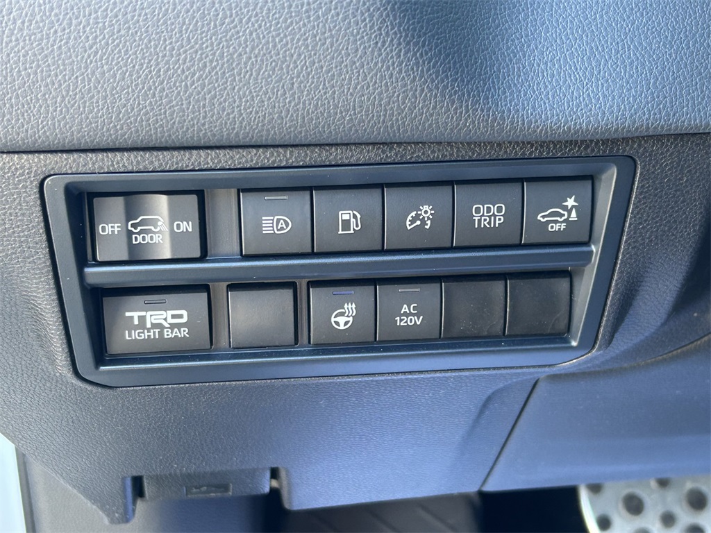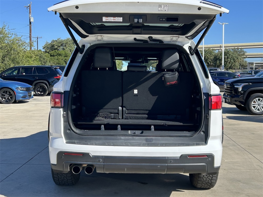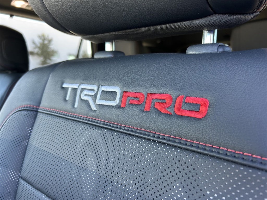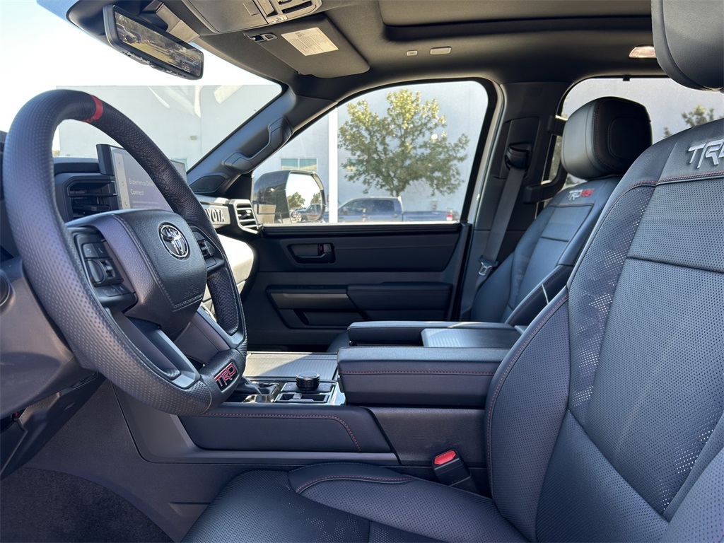 CARFAX One-Owner. Clean CARFAX. V6 Hybrid, 10-Speed Automatic, 4WD, 14 Speakers, 3rd row seats: split-bench, 4-Wheel Disc Brakes, ABS brakes, Active Cruise Control, Air Conditioning, Alloy wheels, AM/FM radio: SiriusXM, Anti-whiplash front head restraints, Apple CarPlay/Android Auto, Auto High-beam Headlights, Auto-dimming door mirrors, Auto-dimming Rear-View mirror, Automatic temperature control, Brake assist, Bumpers: body-color, Compass, Delay-off headlights, Driver door bin, Driver vanity mirror, Dual front impact airbags, Dual front side impact airbags, Electronic Stability Control, Emergency communication system: Safety Connect (10-year trial), Exterior Parking Camera Rear, Front anti-roll bar, Front Bucket Seats, Front Center Armrest w/Storage, Front dual zone A/C, Front fog lights, Front reading lights, Front wheel independent suspension, Fully automatic headlights, Garage door transmitter: HomeLink, Headlight cleaning, Heated & Ventilated Front Seats, Heated door mirrors, Heated front seats, Heated steering wheel, Illuminated entry, Knee airbag, Leather Shift Knob, Leather steering wheel, Low tire pressure warning, Memory seat, Navigation System, Navigation system: Drive Connect (1 year trial) includes Cloud Navigation with real time traffic and Google POI, Occupant sensing airbag, Outside temperature display, Overhead airbag, Overhead console, Panic alarm, Passenger door bin, Passenger vanity mirror, Power door mirrors, Power driver seat, Power Liftgate, Power moonroof, Power passenger seat, Power steering, Power windows, Premium audio system: JBL, Radio: 14" Toyota Audio Multimedia w/JBL Prem Aud, Rear air conditioning, Rear reading lights, Rear seat center armrest, Rear window defroster, Rear window wiper, Reclining 3rd row seat, Remote keyless entry, Security system, Speed control, Speed-sensing steering, Split folding rear seat, Spoiler, Sport steering wheel, Steering wheel mounted audio controls, Tachometer, Telescoping steering wheel, Tilt steering wheel, Traction control, TRD Pro Package, TRD Pro SofTex Seat Trim, Trip computer, Turn signal indicator mirrors, Variably intermittent wipers, Ventilated front seats, Voltmeter, Wheels: 18" TRD Pro Forged-Aluminum BBS.