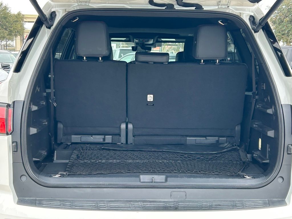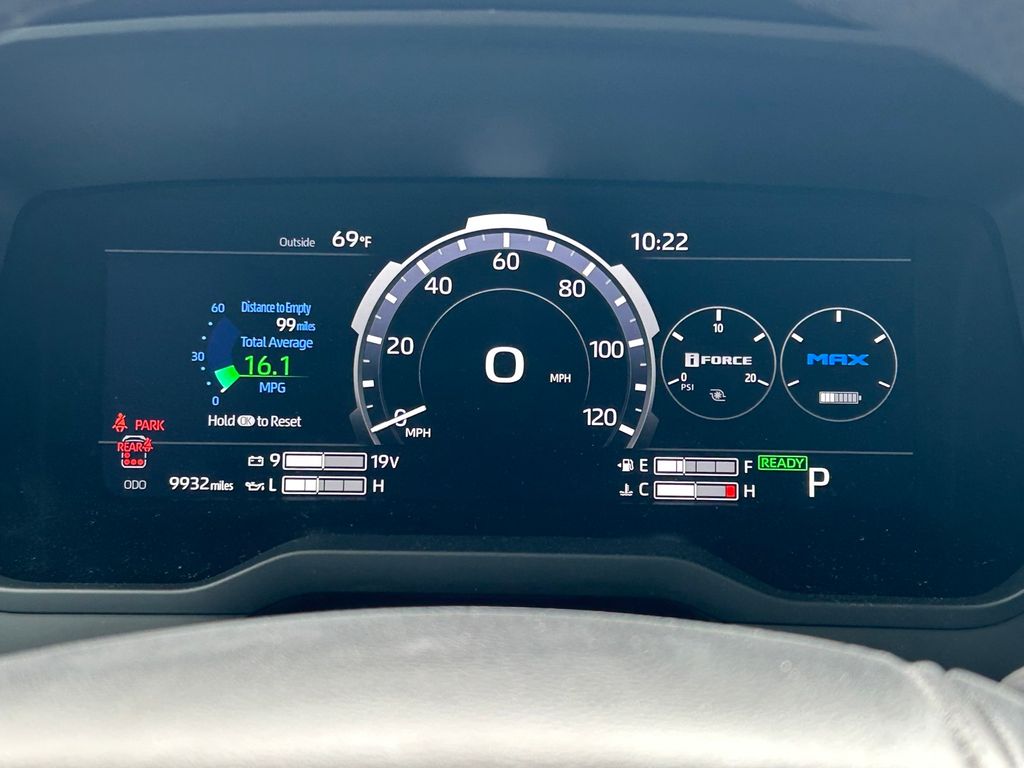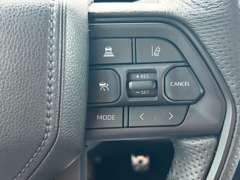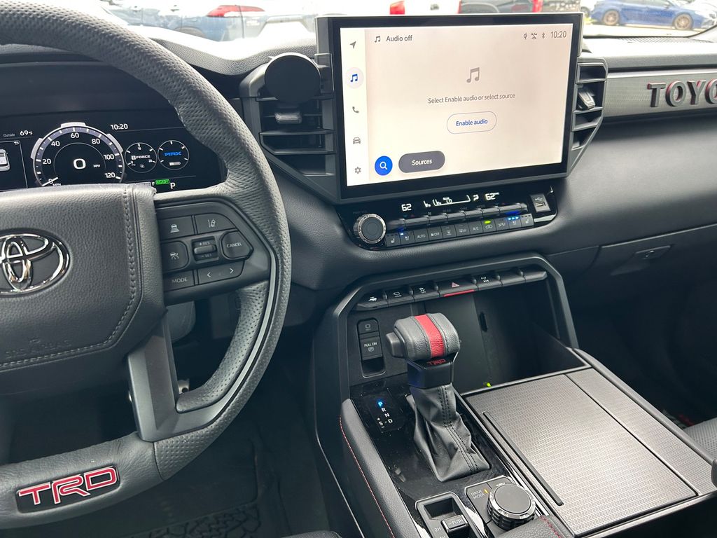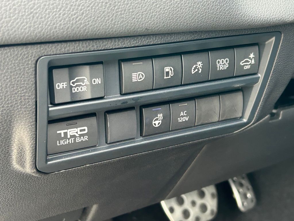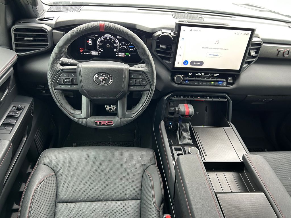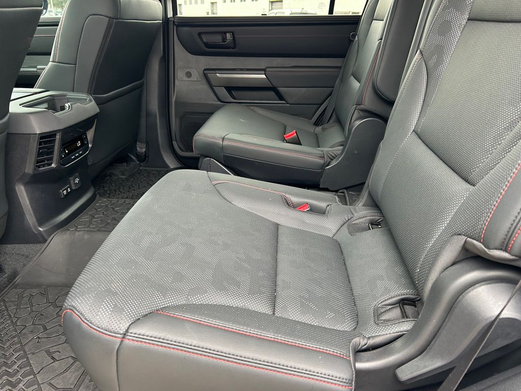 CARFAX One-Owner. Clean CARFAX. V6 Hybrid, 10-Speed Automatic, 4WD, 14 Speakers, 3rd row seats: split-bench, 4-Wheel Disc Brakes, ABS brakes, Air Conditioning, Alloy wheels, AM/FM radio: SiriusXM, Anti-whiplash front head restraints, Apple CarPlay/Android Auto, Auto High-beam Headlights, Auto-dimming door mirrors, Auto-dimming Rear-View mirror, Automatic temperature control, Brake assist, Bumpers: body-color, Compass, Delay-off headlights, Driver door bin, Driver vanity mirror, Dual front impact airbags, Dual front side impact airbags, Electronic Stability Control, Emergency communication system: Safety Connect (10-year trial), Exterior Parking Camera Rear, Front anti-roll bar, Front Bucket Seats, Front Center Armrest w/Storage, Front dual zone A/C, Front fog lights, Front reading lights, Front wheel independent suspension, Fully automatic headlights, Garage door transmitter: HomeLink, Headlight cleaning, Heated & Ventilated Front Seats, Heated door mirrors, Heated front seats, Heated steering wheel, Illuminated entry, Knee airbag, Leather Shift Knob, Leather steering wheel, Low tire pressure warning, Memory seat, Navigation system: Drive Connect (1 year trial) includes Cloud Navigation with real time traffic and Google POI, Occupant sensing airbag, Outside temperature display, Overhead airbag, Overhead console, Panic alarm, Passenger door bin, Passenger vanity mirror, Power door mirrors, Power driver seat, Power Liftgate, Power moonroof, Power passenger seat, Power steering, Power windows, Premium audio system: JBL, Radio: 14" Toyota Audio Multimedia w/JBL Prem Aud, Rear air conditioning, Rear reading lights, Rear seat center armrest, Rear window defroster, Rear window wiper, Reclining 3rd row seat, Remote keyless entry, Security system, Speed control, Speed-sensing steering, Split folding rear seat, Spoiler, Sport steering wheel, Steering wheel mounted audio controls, Tachometer, Telescoping steering wheel, Tilt steering wheel, Traction control, TRD Performance Package (TMS), TRD Pro Package, TRD Pro SofTex Seat Trim, TRD Windshield UV Sunshade (TMS), Trip computer, Turn signal indicator mirrors, Variably intermittent wipers, Ventilated front seats, Voltmeter, Wheels: 18" TRD Pro Forged-Aluminum BBS.