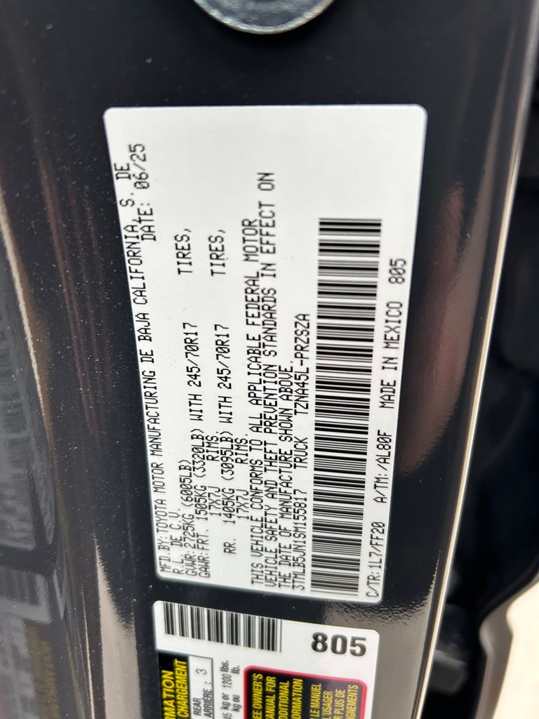 Clean CARFAX. 4WD, 3.583 Axle Ratio, 4-Wheel Disc Brakes, 6 Speakers, ABS brakes, Air Conditioning, Alloy wheels, AM/FM radio: SiriusXM, Anti-whiplash front head restraints, Apple CarPlay/Android Auto, Auto High-beam Headlights, Auto-dimming Rear-View mirror, Brake assist, Bumpers: body-color, Driver door bin, Dual front impact airbags, Dual front side impact airbags, Electronic Stability Control, Emergency communication system: Safety Connect (1-year trial), Exterior Parking Camera Rear, Fabric Seat Trim, Four wheel independent suspension, Front anti-roll bar, Front Bucket Seats, Front Center Armrest, Front fog lights, Front reading lights, Fully automatic headlights, Heated door mirrors, Heated Seats, HomeLink Universal Transceiver, Illuminated entry, Integrated Trailer Brake Controller, JBL Premium Audio, Knee airbag, Leather-Trimmed Steering Wheel, Low tire pressure warning, Occupant sensing airbag, Outside temperature display, Overhead airbag, Overhead console, Panic alarm, Passenger door bin, Power door mirrors, Power Horizontal Rear Window, Power steering, Power windows, Radio: 8" Toyota Audio Multimedia, Rear step bumper, Rear Underseat Storage Compartment, Rear window defroster, Remote keyless entry, Smart Key w/Digital Key Technology, Speed control, Speed-sensing steering, Split folding rear seat, SR5 Upgrade Package, Steering wheel mounted audio controls, Tachometer, TACOMA Stamped Easy Lower & Lift Tailgate, Telescoping steering wheel, Tilt steering wheel, Traction control, Trip computer, Variably intermittent wipers, Wheels: 17" Styled Alloy.