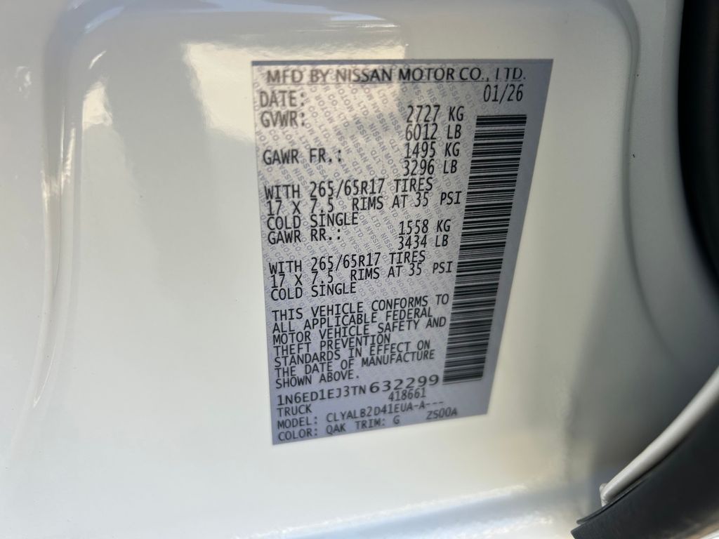 2026 Glacier White Nissan Frontier 3.8L DI DOHC 24V V6 RWD SV