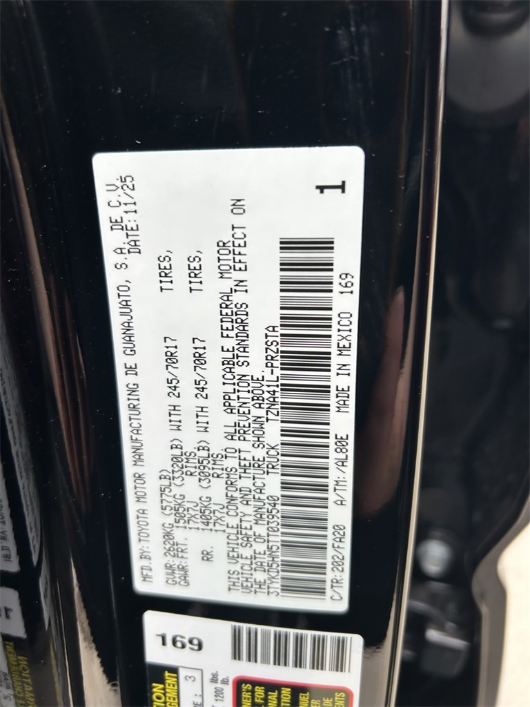2026 Black Toyota Tacoma 2.4L 4-Cylinder RWD SR